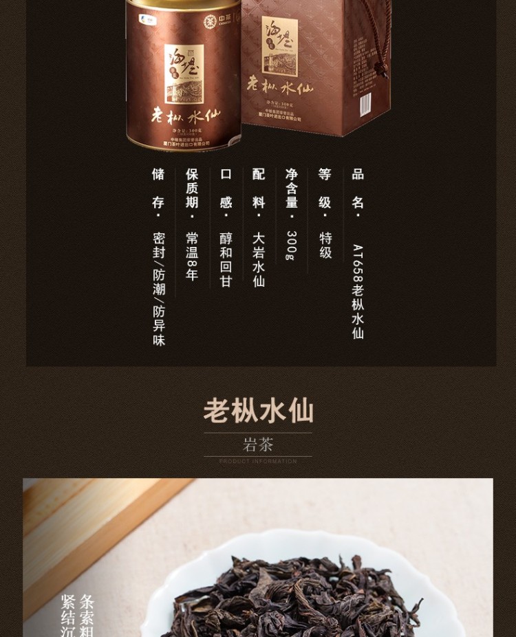 中茶海堤牌 老枞水仙礼盒 轻火300g克 小罐装乌龙茶 AT658