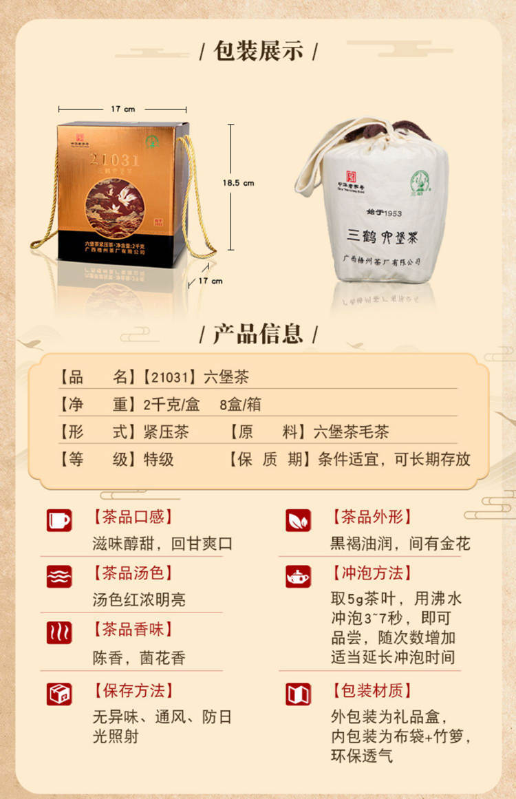 2024年三鹤六堡茶 21031 特级散茶2千克 盒装