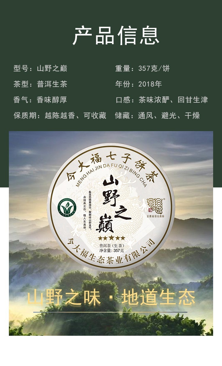 2018年今大福 五星 山野之巅 357克古树七子饼
