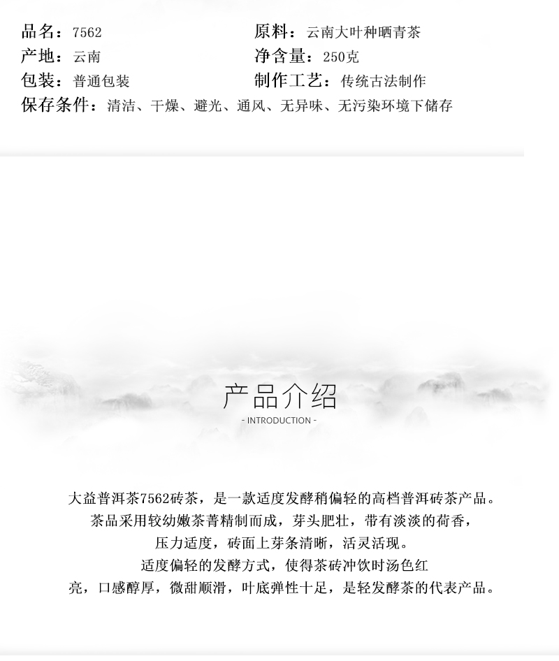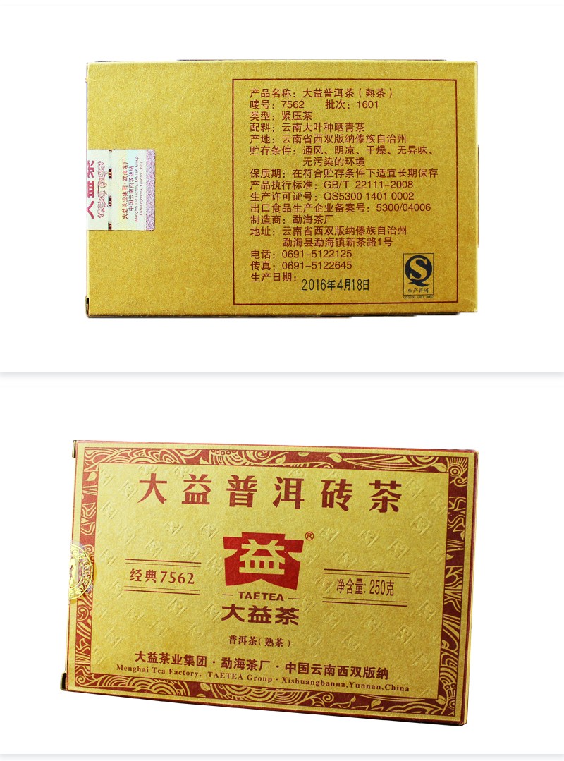 2016年大益 7562砖茶 250克熟茶 1601批