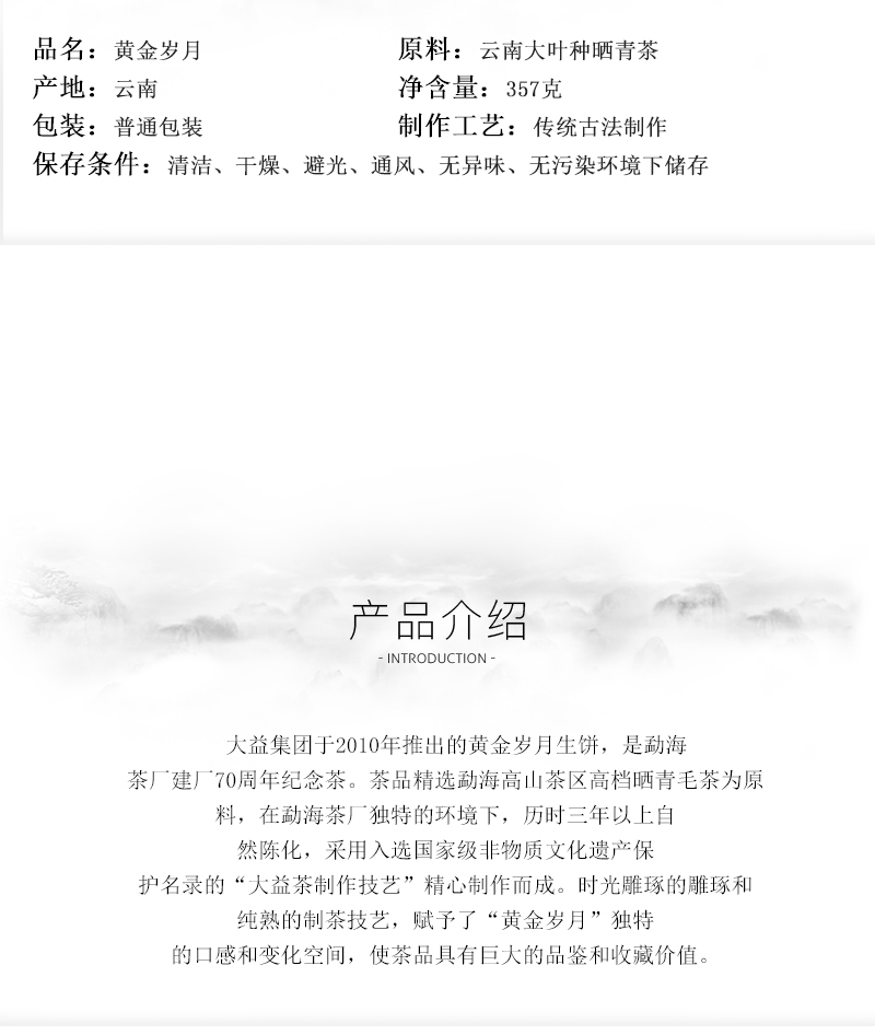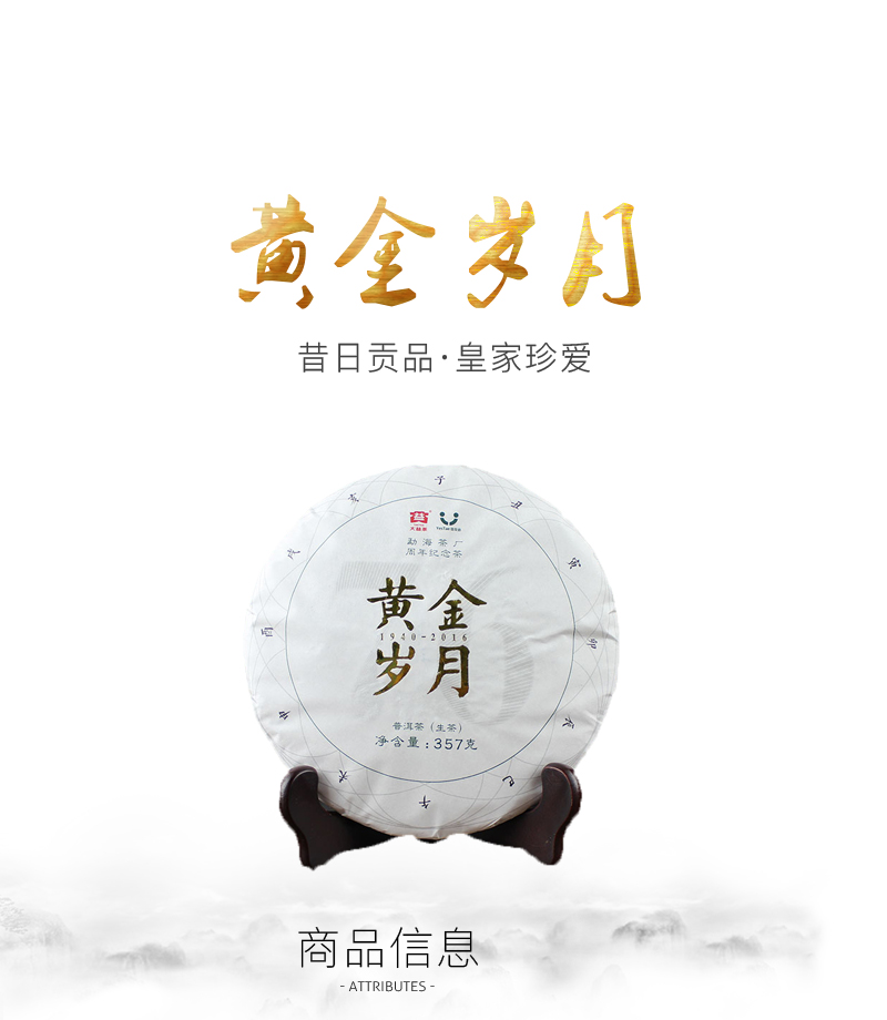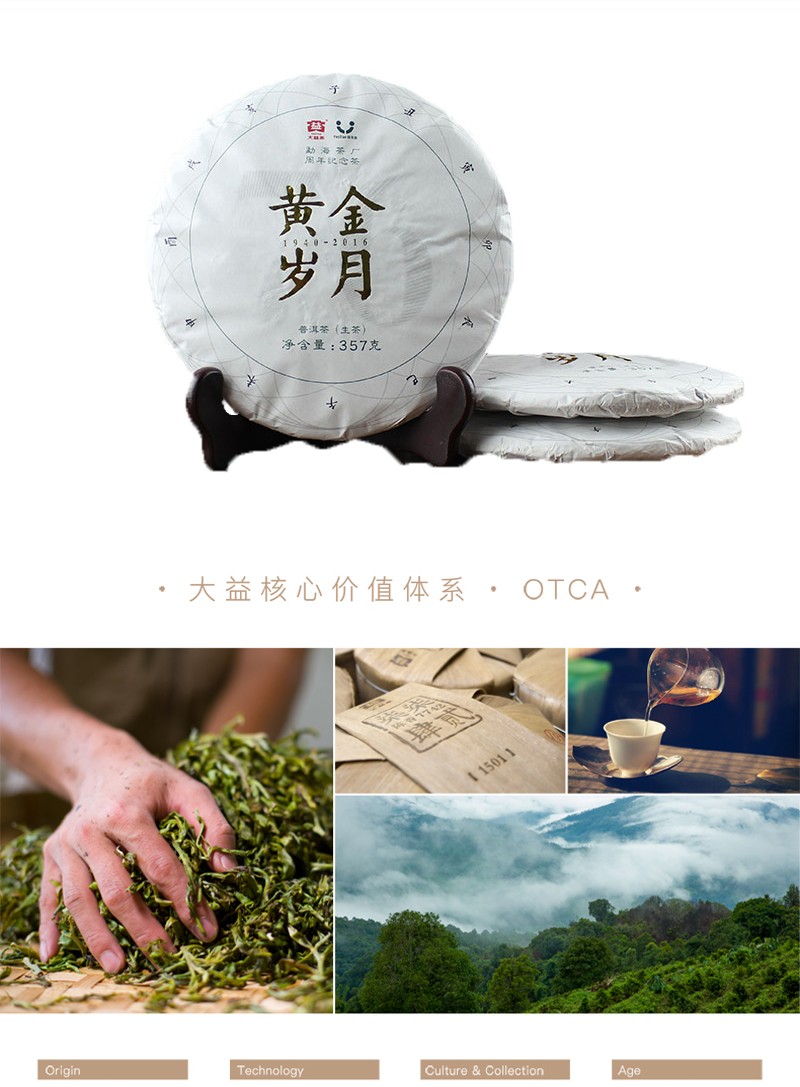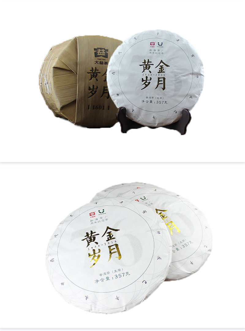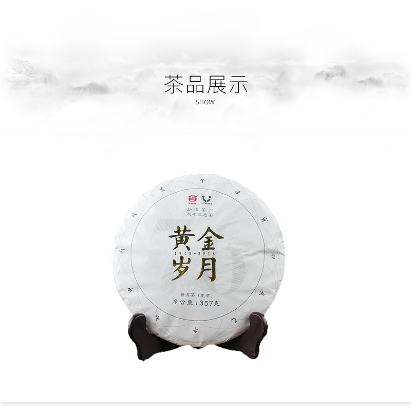 2016年大益 黄金岁月 357克七子饼生茶 1601批