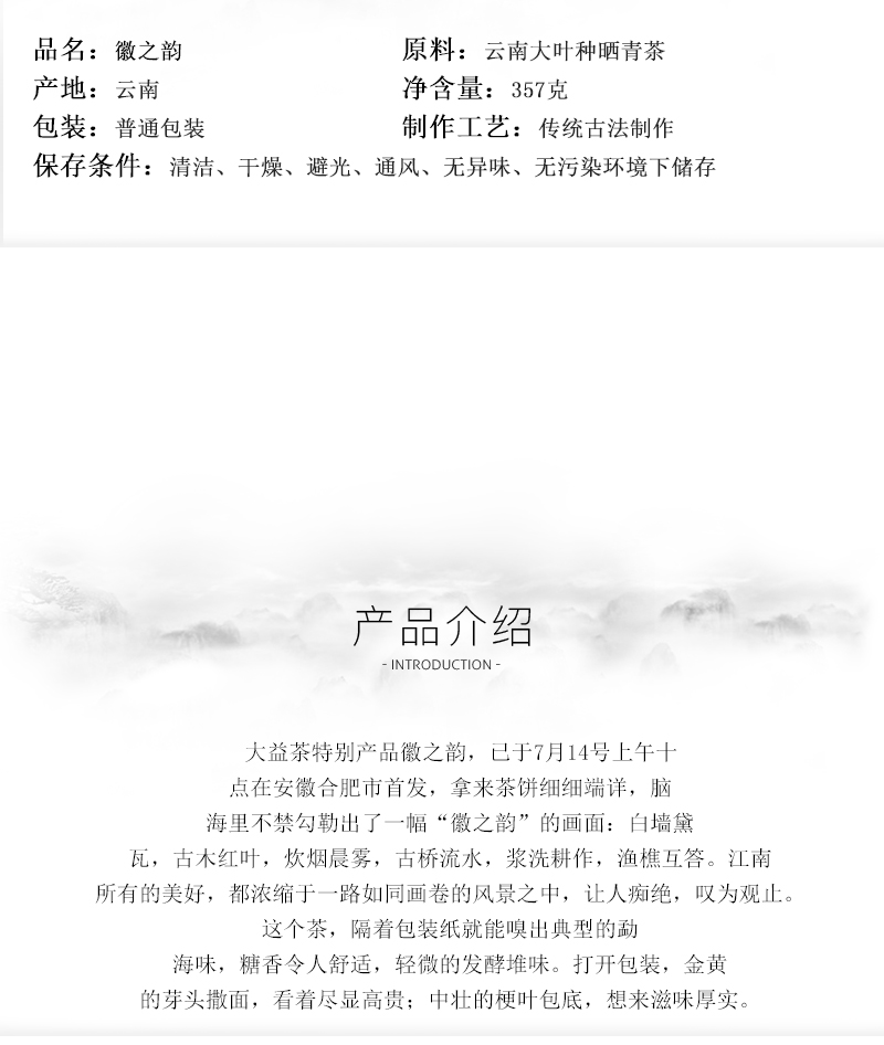 2016年大益 徽之韵 经典熟茶 357克七子饼