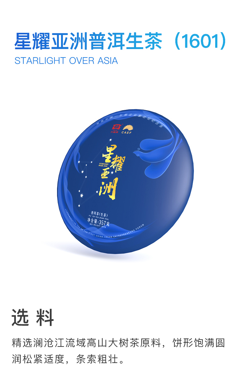 2016年大益 星耀亚洲 357克七子饼生茶 1601批