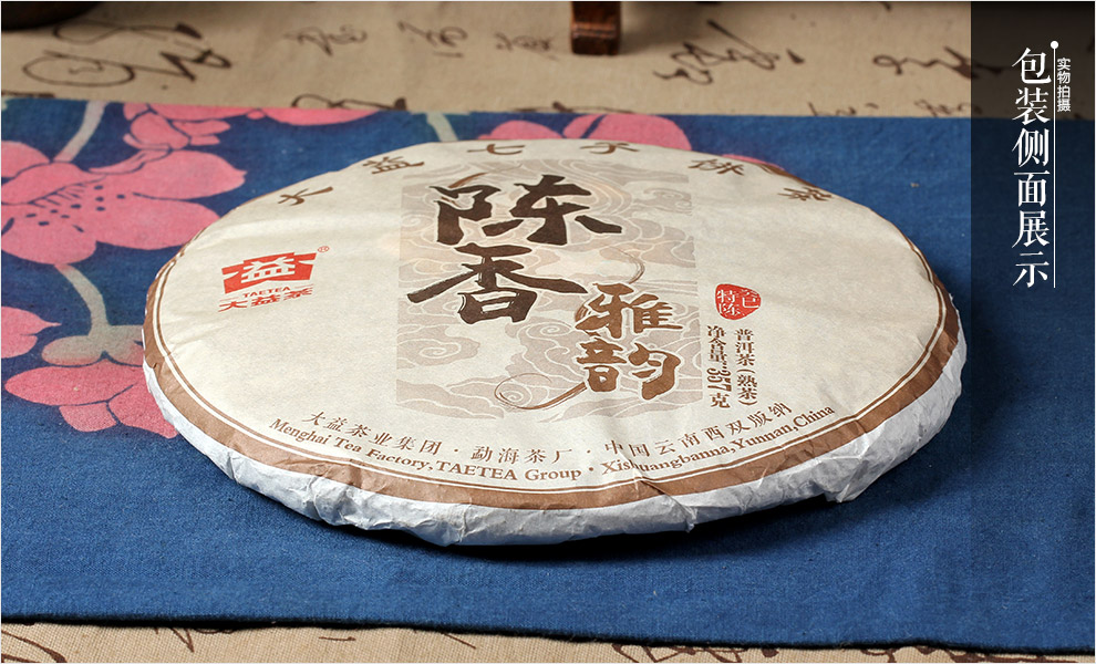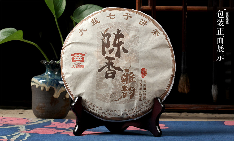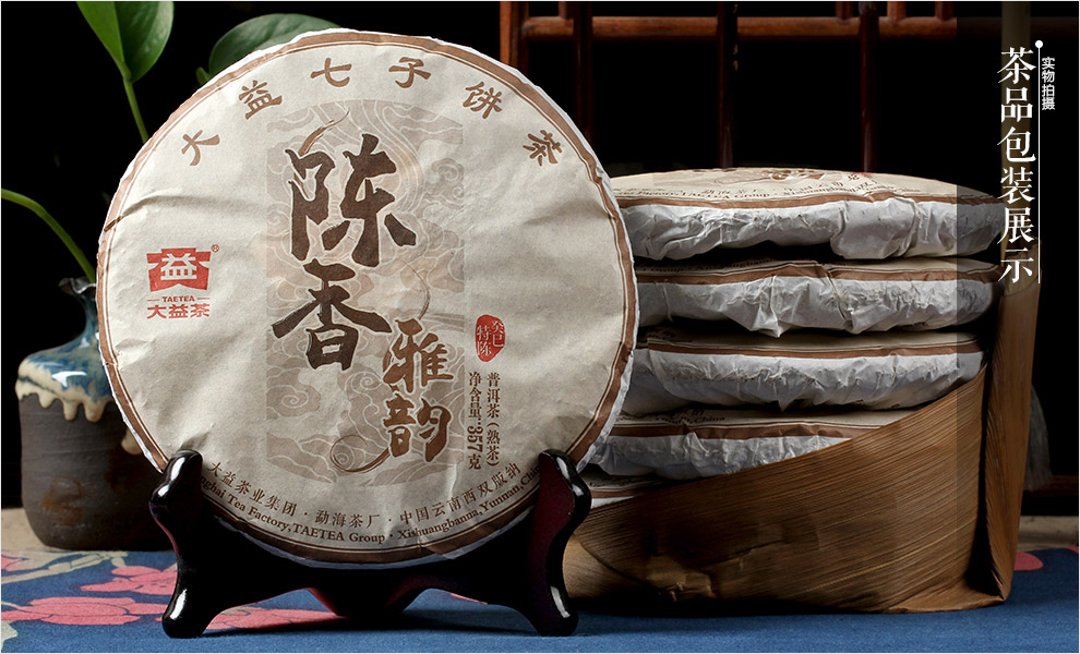 云南 普洱茶 大益 2015年 陈香雅韵 饼茶 熟茶 357g/饼 ——茶品包装展示