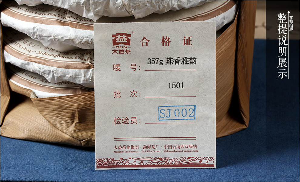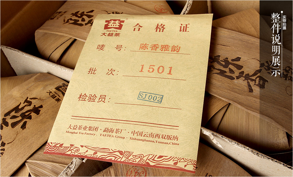 云南 普洱茶 大益 2015年 陈香雅韵 饼茶 熟茶 357g/饼——包装正面展示  云南 普洱茶 大益 2015年 陈香雅韵 饼茶 熟茶 357g/饼 ——包装背面展示图片供参考,茶品生产日期随机发货! 云南 普洱茶 大益 2015年 陈香雅韵 饼茶 熟茶 357g/饼 ——防伪标签展示包装背面防伪,只有在荧光的照射下才能看见!(此防伪只针对本款产品)简单的鉴别方法,用肉眼观察就可分辨真伪:内飞及标签上均有一根深棕色的线在纸上时隐时现,线上印有激光缩微文字"大益",微缩字母"DAYI"在特定位置通过荧光灯亦清晰可见,满足以上条件即为大益真品。 云南 普洱茶 大益 2015年 陈香雅韵 饼茶 熟茶 357g/饼 ——包装侧面展示 云南 普洱茶 大益 2015年 陈香雅韵 饼茶 熟茶 357g/饼 ——整提包装展示 云南 普洱茶 大益 2015年 陈香雅韵 饼茶 熟茶 357g/饼 ——整提包装展示 云南 普洱茶 大益 2015年 陈香雅韵 饼茶 熟茶 357g/饼 ——整提包装展示 云南 普洱茶 大益 2015年 陈香雅韵 饼茶 熟茶 357g/饼 ——整提说明展示 云南 普洱茶 大益 2015年 陈香雅韵 饼茶 熟茶 357g/饼 ——整件包装展示图片供参考,茶品生产日期随机发货! 云南 普洱茶 大益 2015年 陈香雅韵 饼茶 熟茶 357g/饼 ——整件包装展示 云南 普洱茶 大益 2015年 陈香雅韵 饼茶 熟茶 357g/饼 ——整件说明展示 |