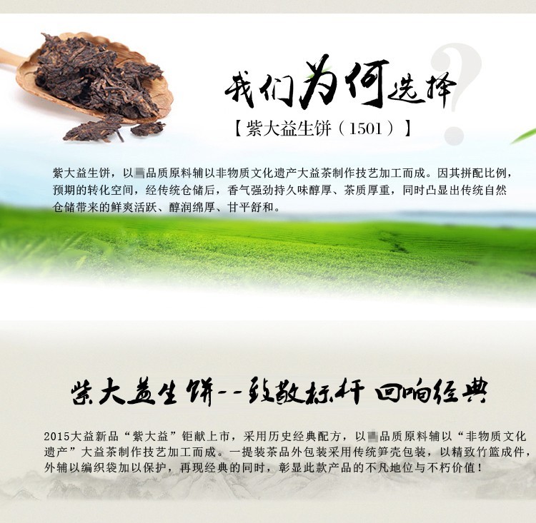 2015年大益 紫大益 经典再现 357克生茶 1501批
