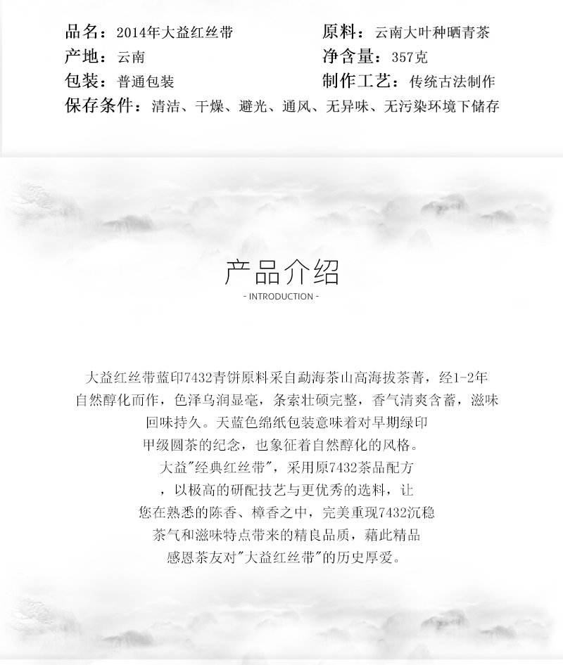 2014年大益 红丝带7432 经典七子饼生茶 1401批