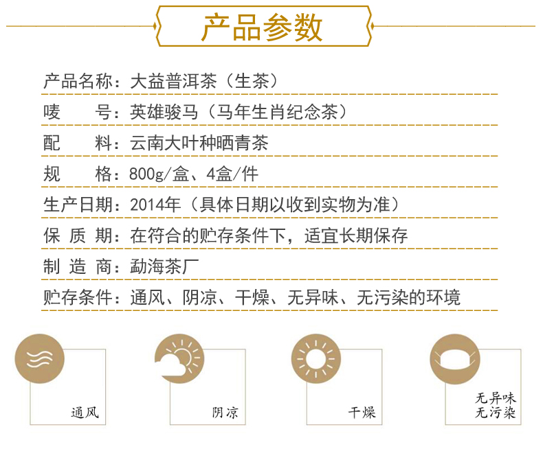 2014年大益 英雄骏马 800克生茶七子饼 生肖饼 礼盒装