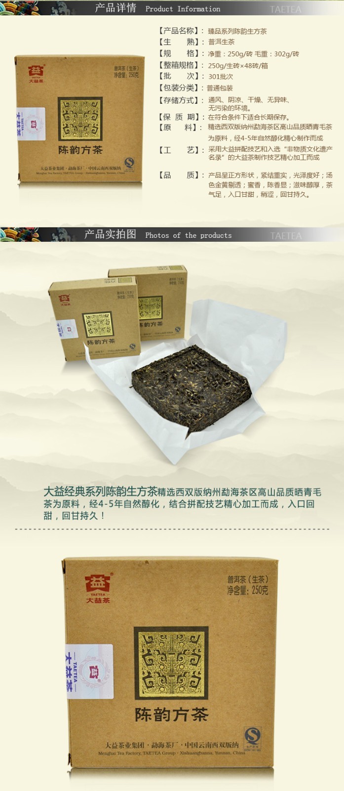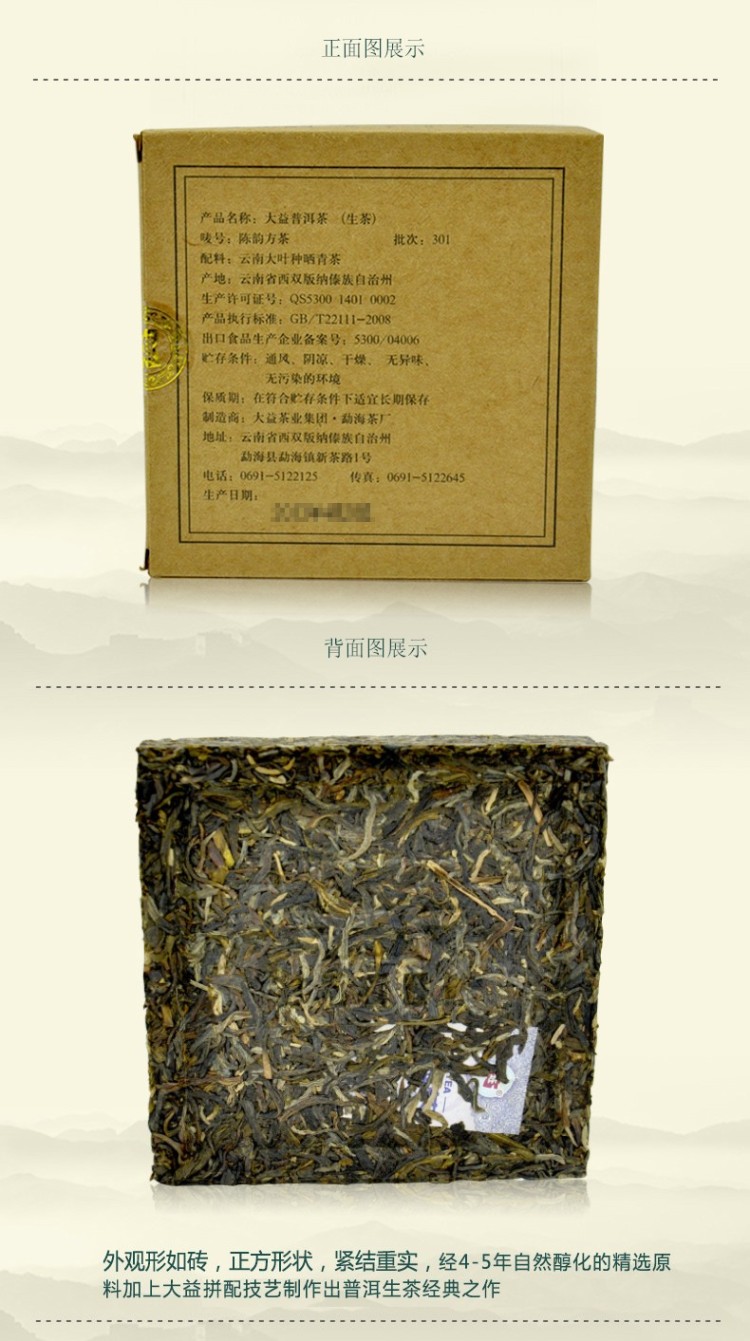 2013年大益 陈韵方茶 250克砖茶生茶 1301批