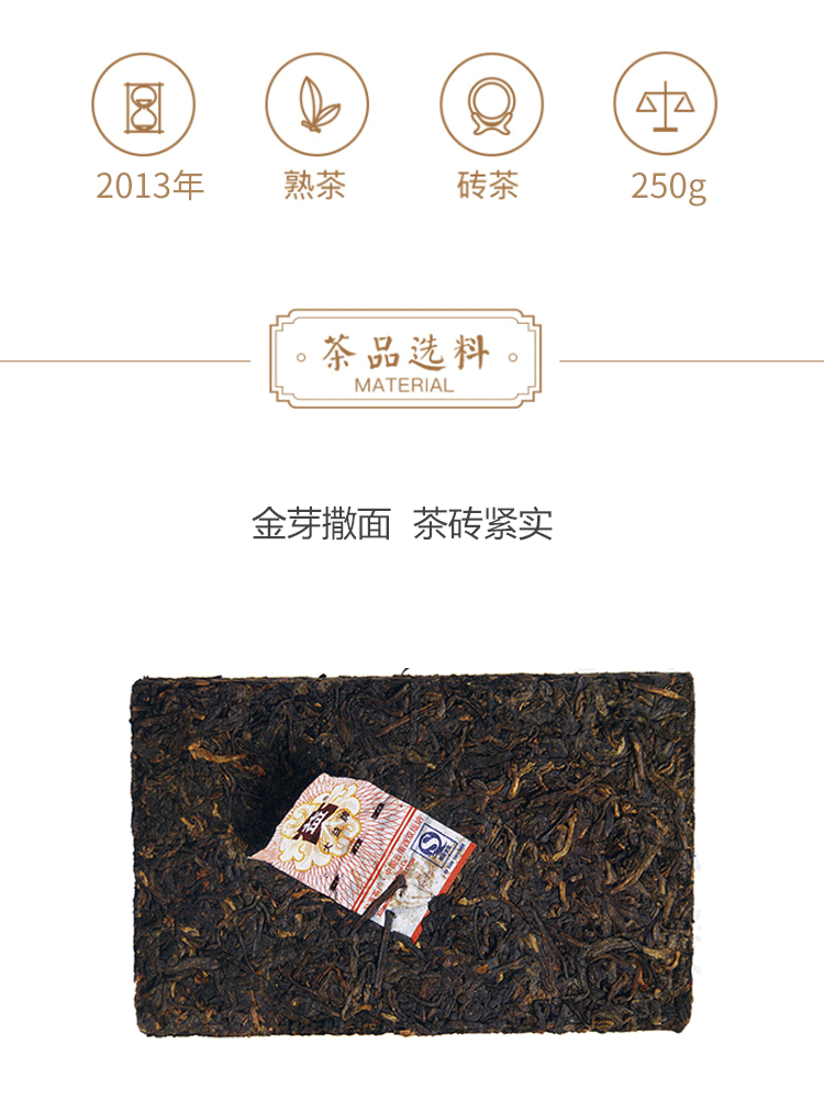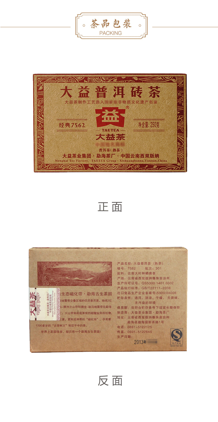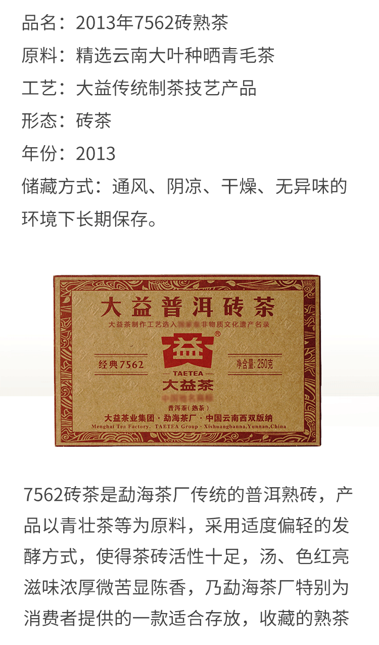 2013年大益 经典7562砖茶 250克熟茶 1301批