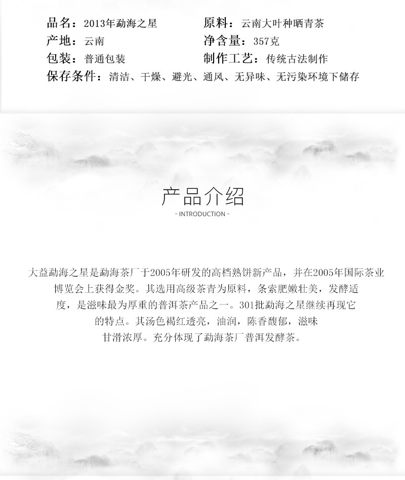 2013年大益 勐海之星 357克熟茶七子饼 1301批