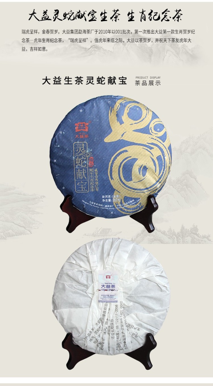 2013年大益 蛇年生肖纪念饼 357克七子饼生茶 1301批