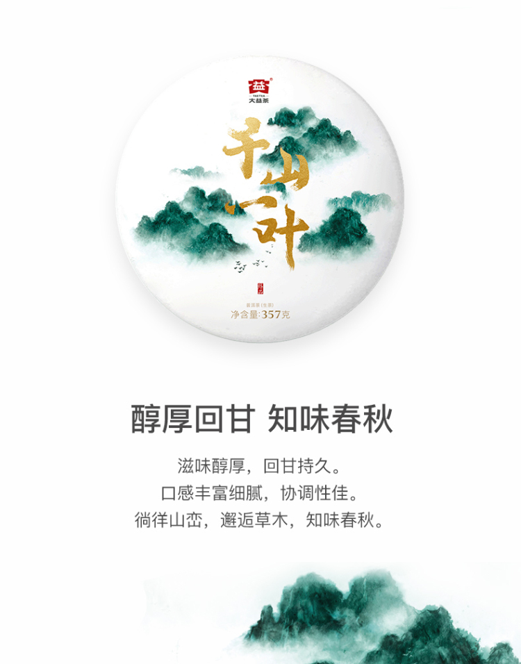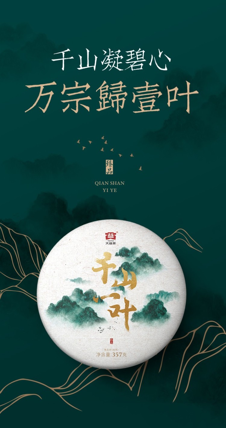 2018年大益 千山一叶 五年陈韵珍藏青饼 357克饼茶 臻品