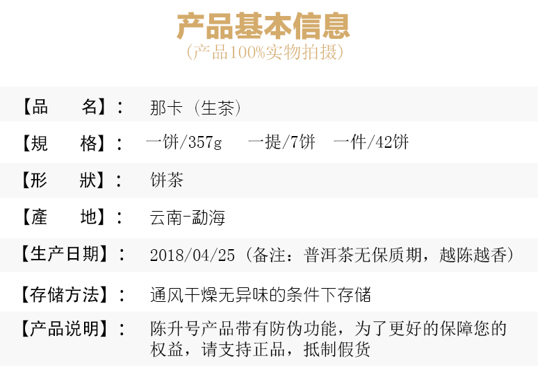 2018年陈升号 那卡纯料生茶 357克大树茶
