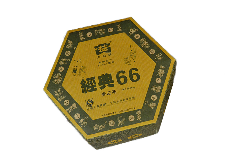 大益经典66系列,系勐海茶厂在2006年为了纪念茶厂创立66周年而特制的纪念茶,推出了包括茶饼,茶砖及沱茶几种茶款。茶身重量每片为660克,意为六六大顺!其韵味独特,中壮茶菁、滋味醇浓、陈香馥郁、回味持久!