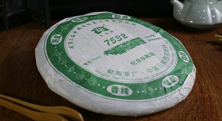7532采用三级陈化主料精心拼配制作而成,茶气较饱满,鲜爽度较好,是早年雪印青饼的复出,性价比很高,荣获第三届中国国际茶业博览会银奖。较常规产品,压制较紧结,结构上有外紧里松的特征,后发酵会稍慢,但经过时间的雕琢会有其独特的韵味体现。同时本款茶品采用历史传统配方,香纯味酽韵厚,汤色嫩黄亮丽,口感细腻,回味悠远,是爱茶人不可多得的一款极品品饮与收藏佳品。