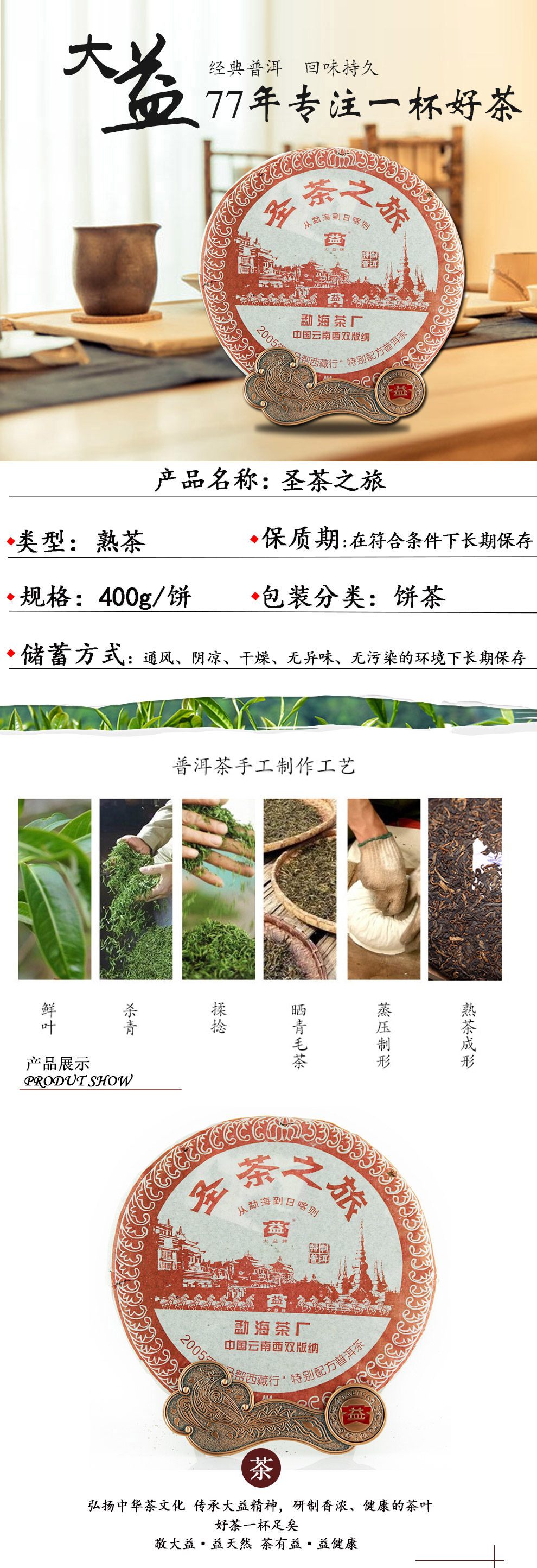 2006年大益 圣茶之旅 熟茶 400克七子饼 601批