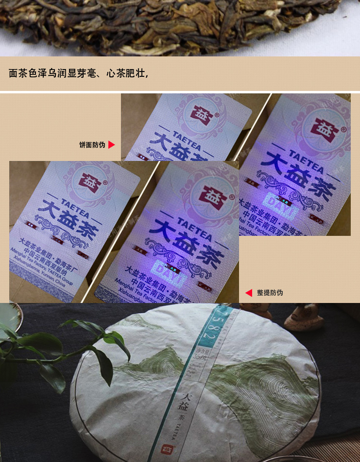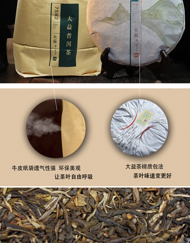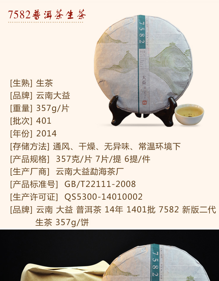 2014年大益 7582生茶 357克七子饼 1401批