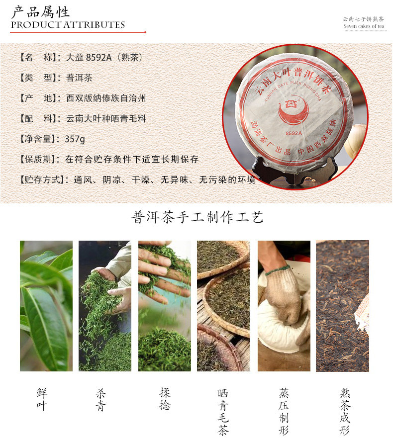 2005年大益 8592A熟茶 357克七子饼 501批