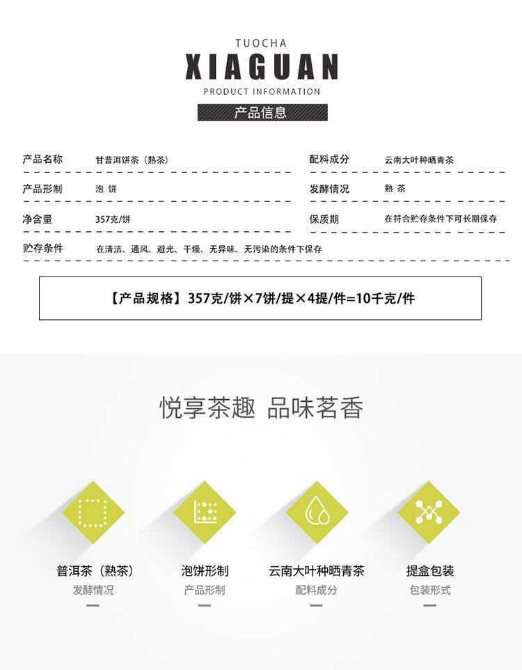 2019年下关沱茶金榜系列 甘普洱 泡饼 357g/片 熟茶七子饼