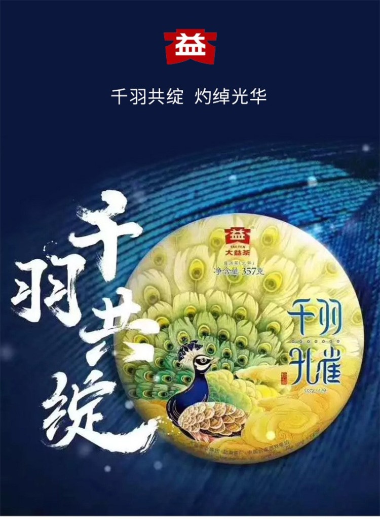 2018年大益 千羽孔雀 1801批 生茶 357克/饼