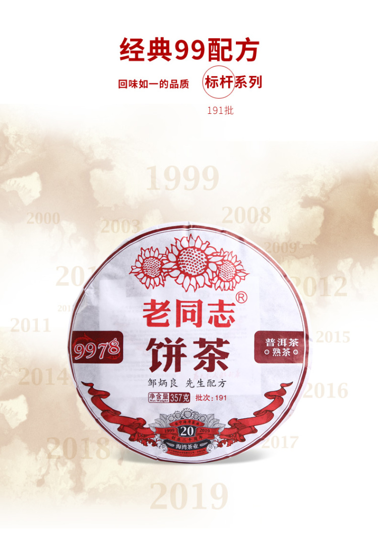 2019年老同志 9978 普洱茶熟茶 七子饼茶