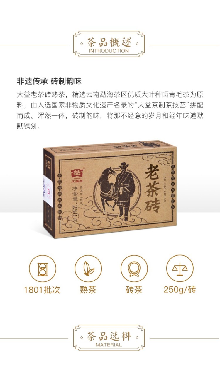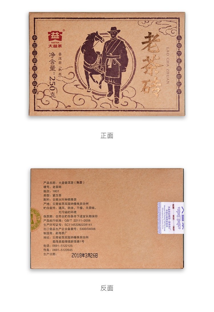 2018年大益 老茶砖 普洱熟茶 250克/盒 1801批次