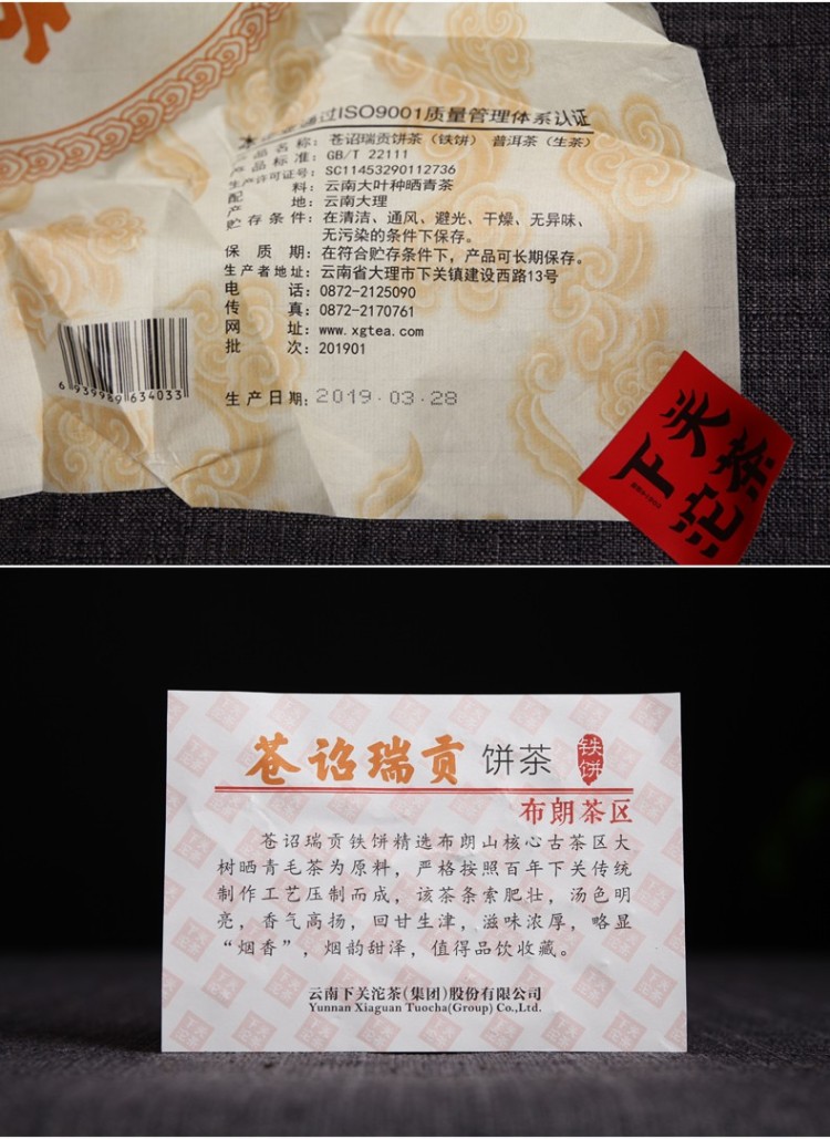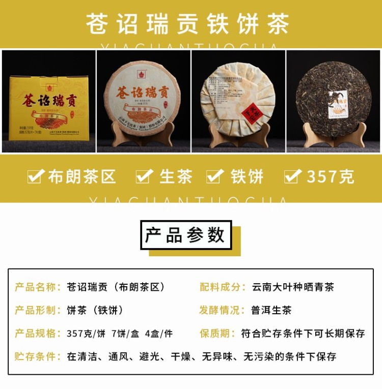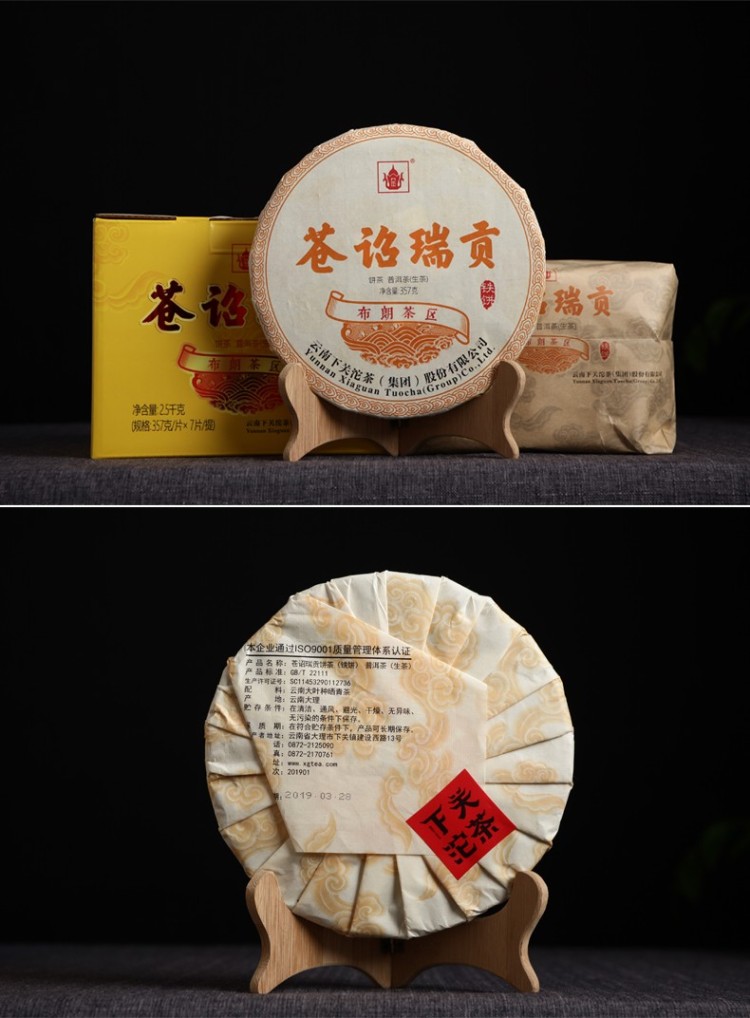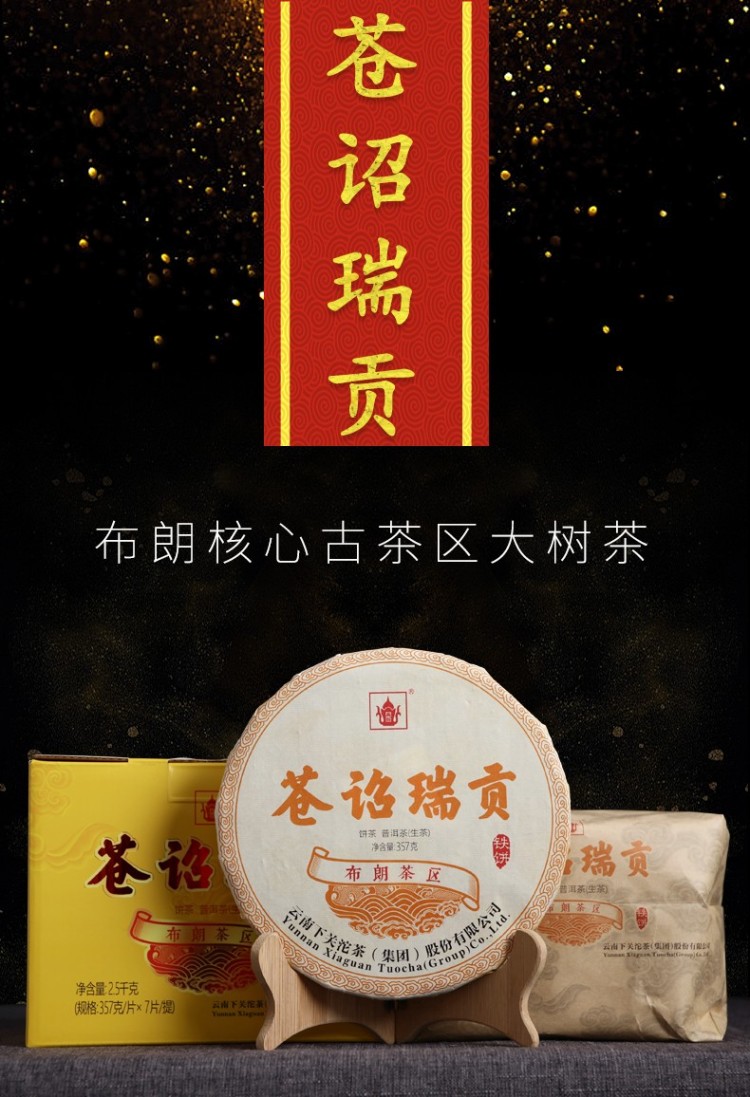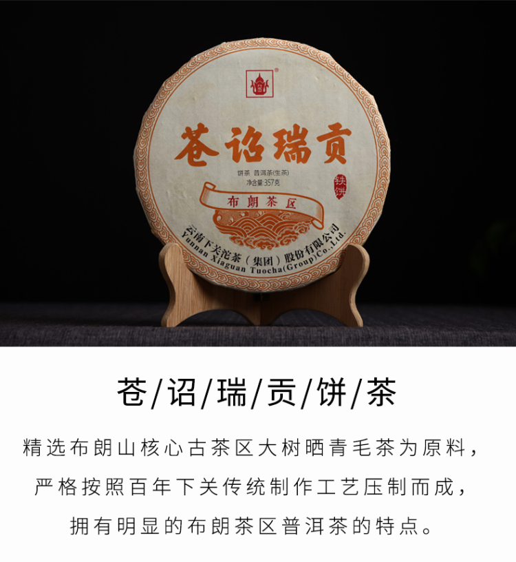 2019年下关 苍诏瑞贡 古树饼茶 357克生茶 布朗茶区