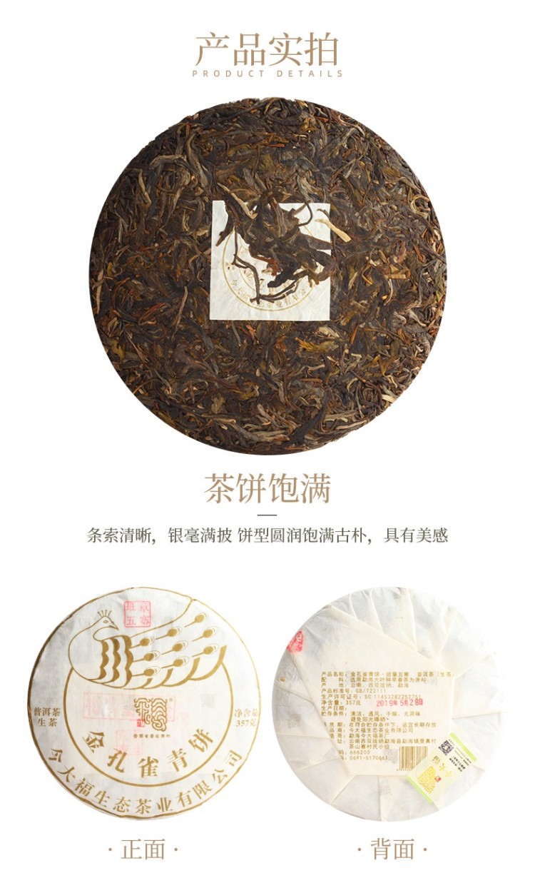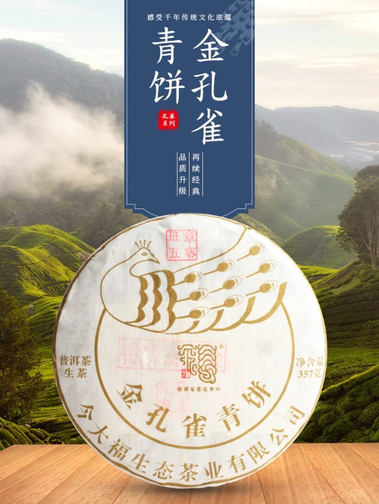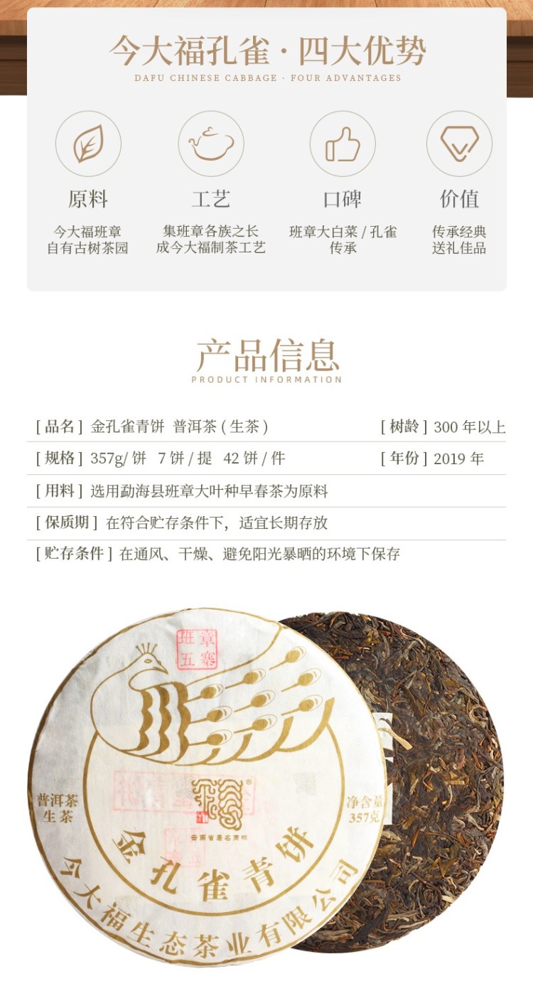 2019年今大福 班章五寨金孔雀青饼 生茶 357克茶饼