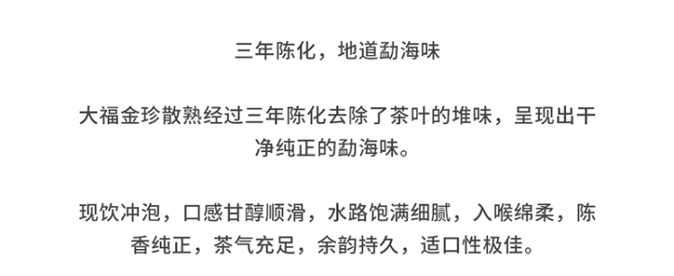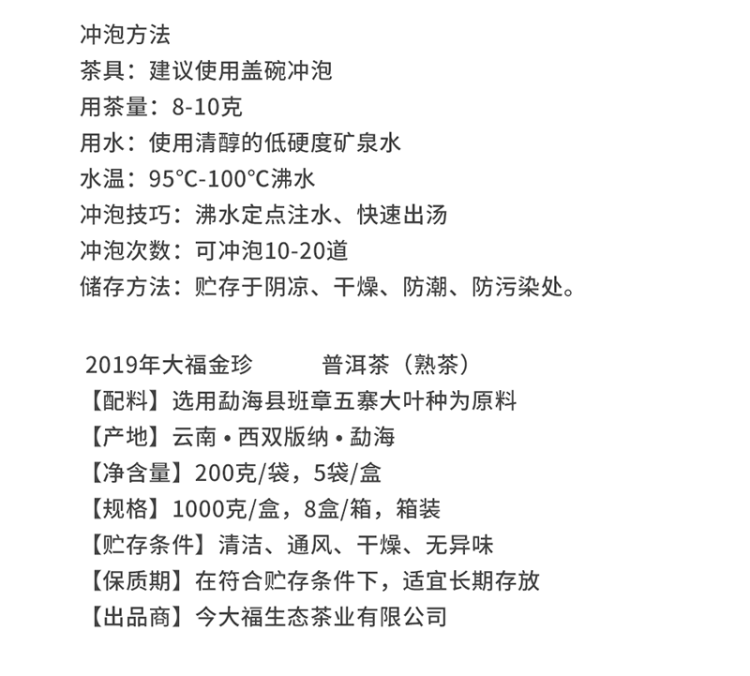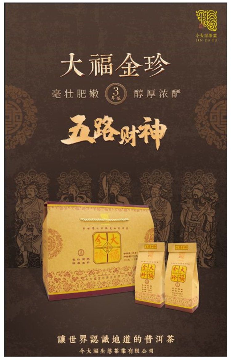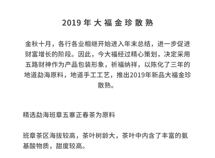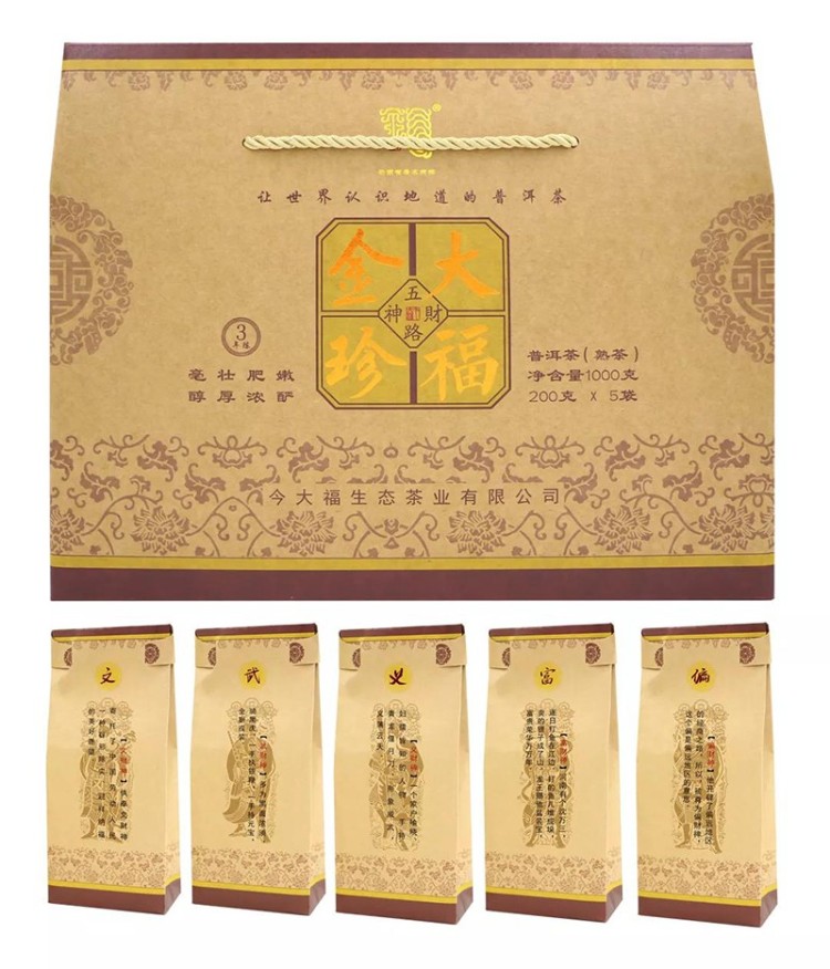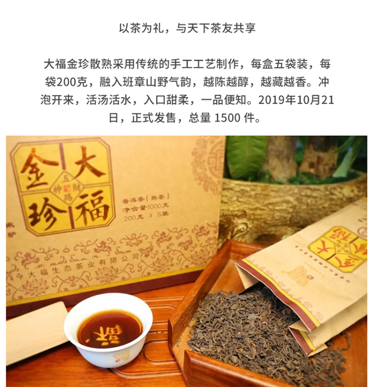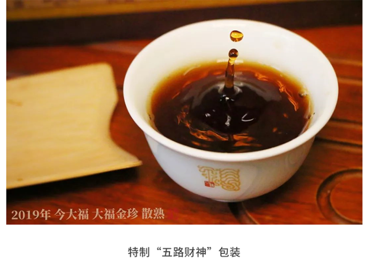 2019年今大福 大福金珍 五路财神 三年陈班章熟茶 1000克散茶