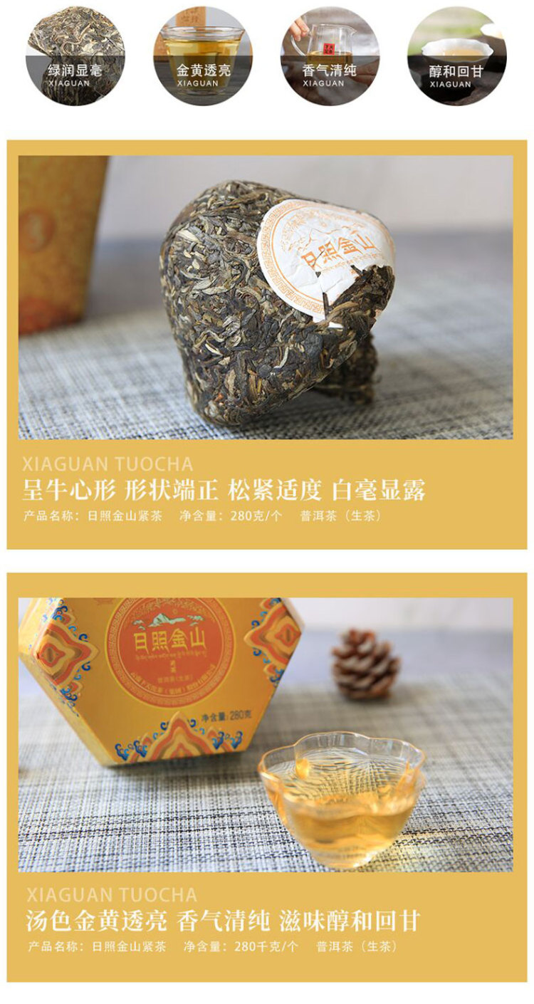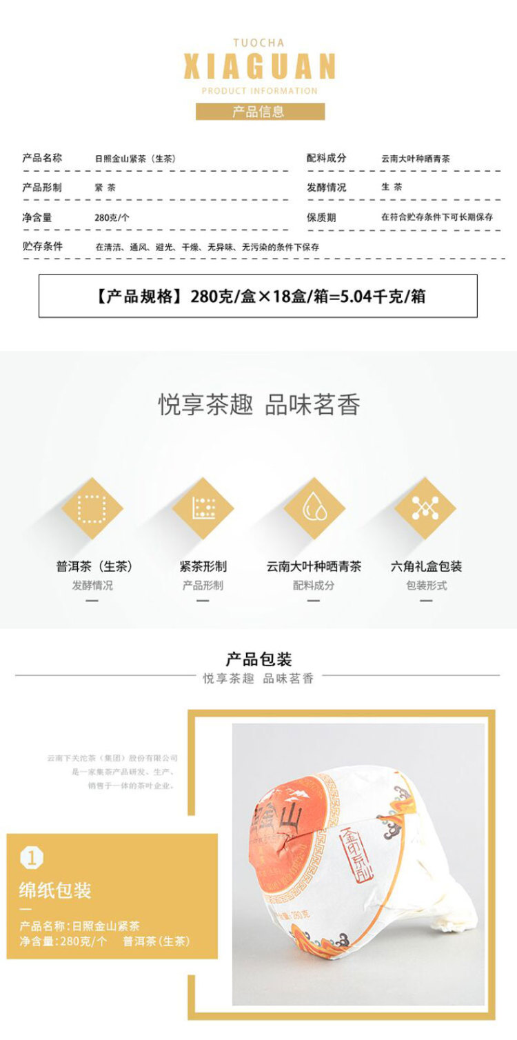 2019年下关 日照金山 生茶 280g/盒 早春古树布朗茶区