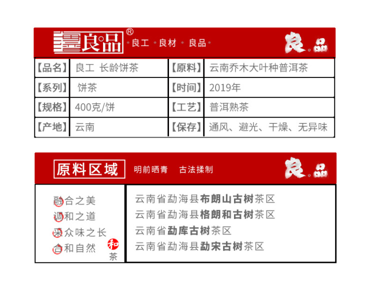【长龄】取材自布朗山、格朗和、勐库、勐宋茶区高山古树为原料