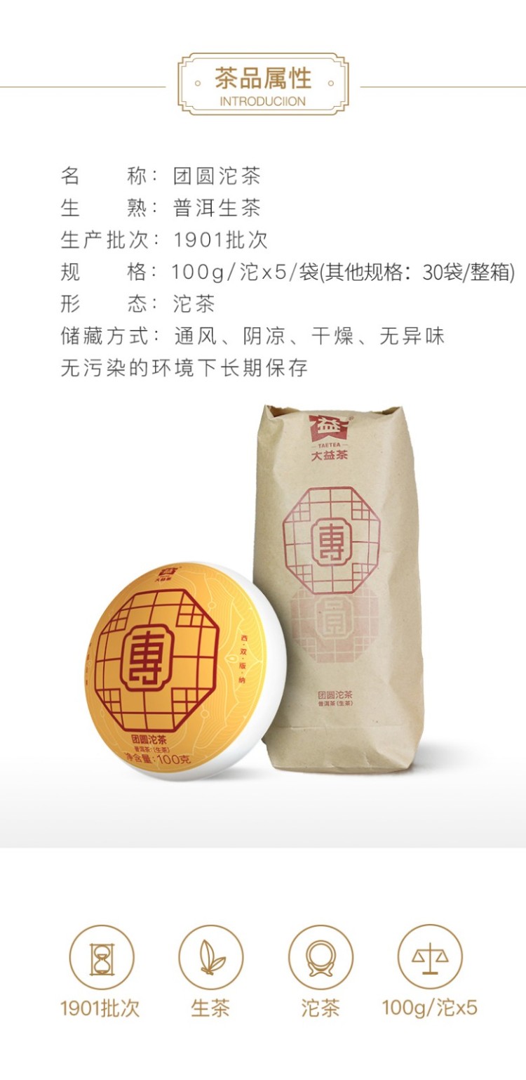 2019年大益 团圆沱茶 生茶 100克 1901批