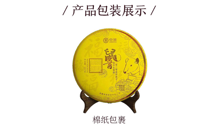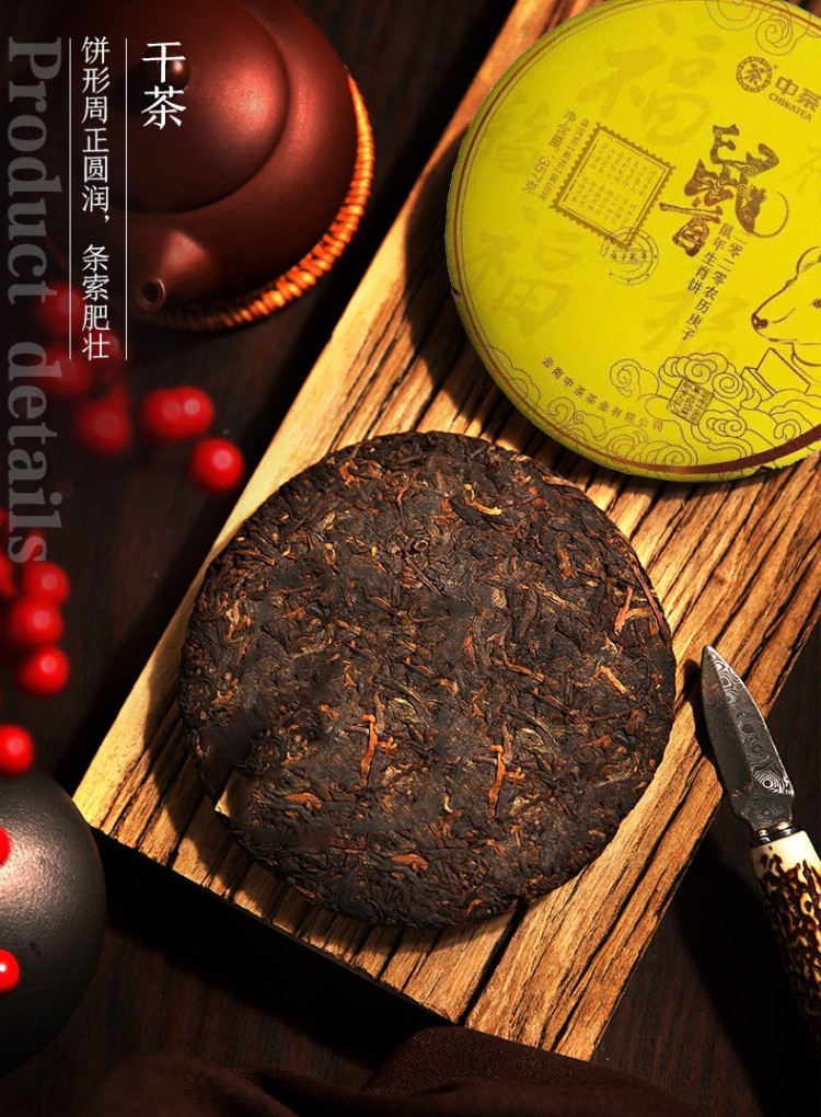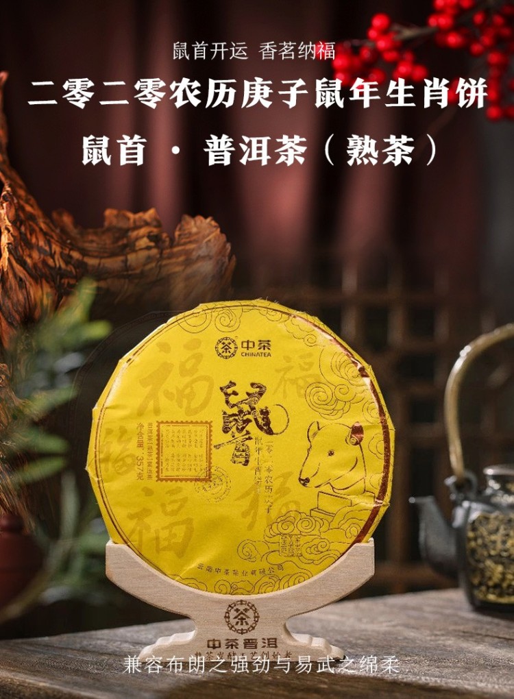 2020年中茶 鼠首 鼠年生肖纪念饼 熟茶 357克/饼