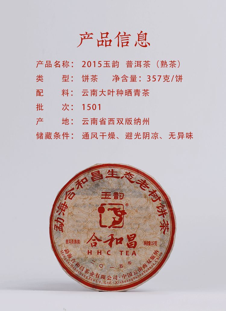 2015年合和昌 玉韵 勐海古树老熟茶饼茶357克七子饼
