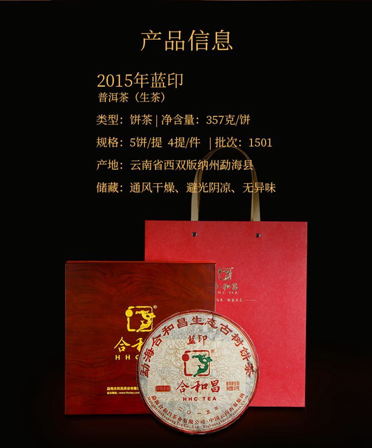 2015年合和昌 蓝印 生茶饼七子饼茶 357克 勐海古树茶