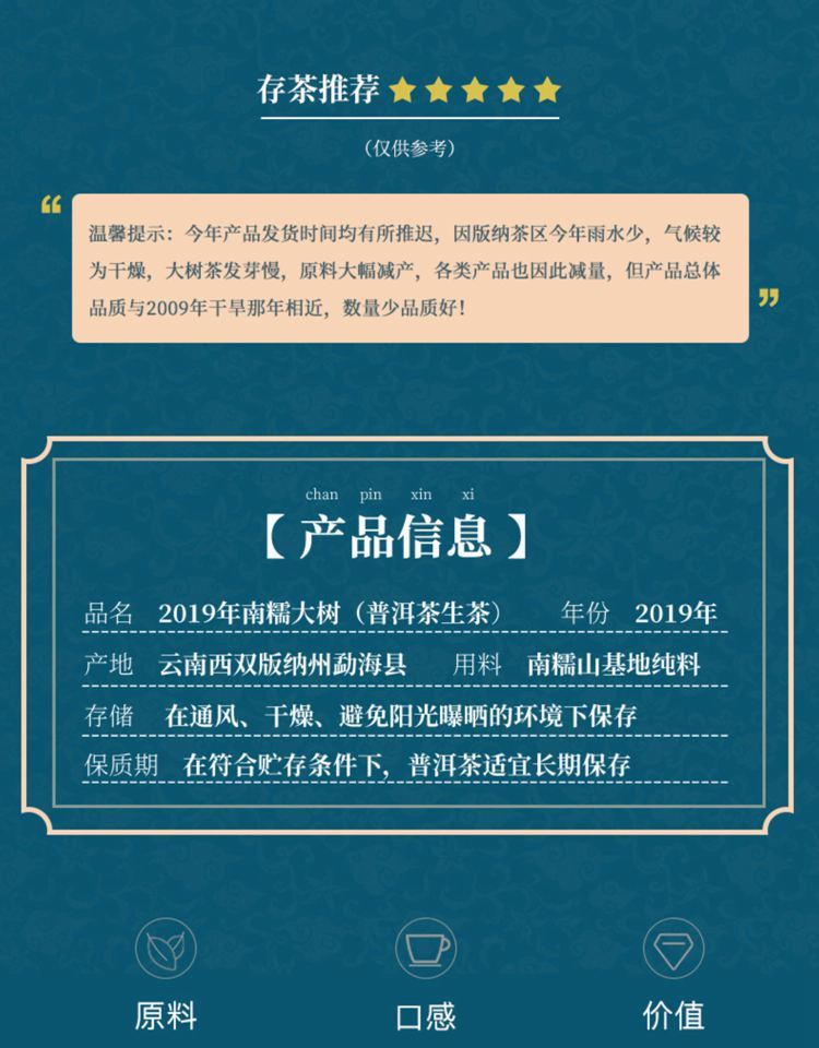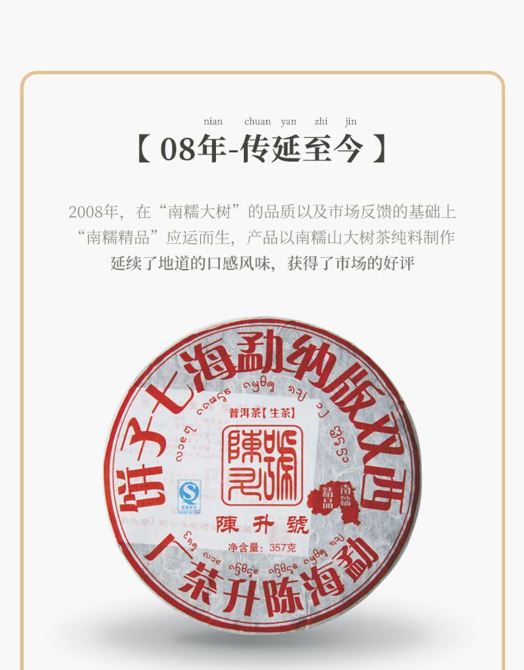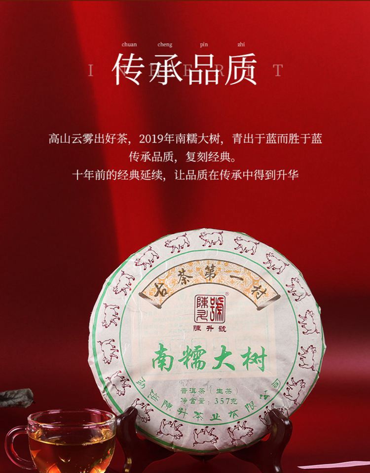 2019年陈升号 南糯大树 普洱茶生茶 纯料半坡寨357克饼茶