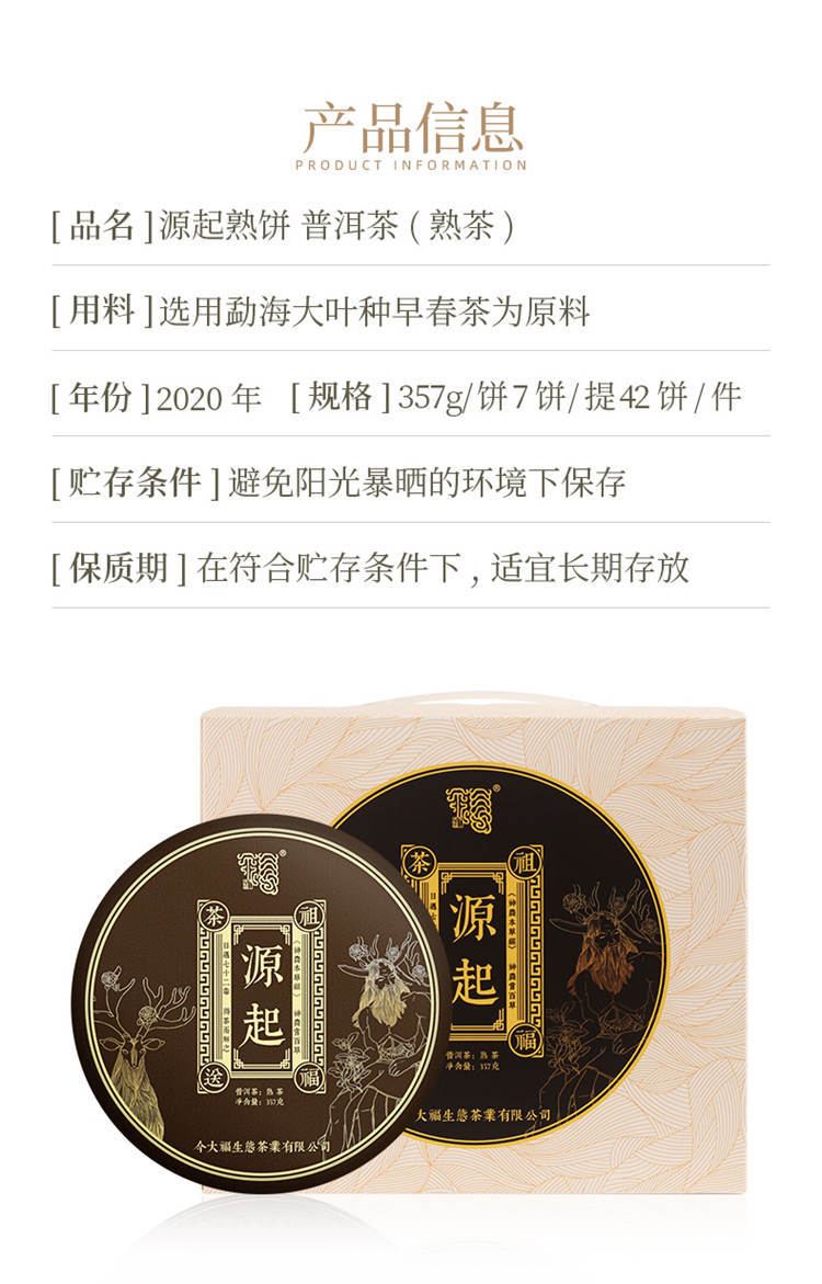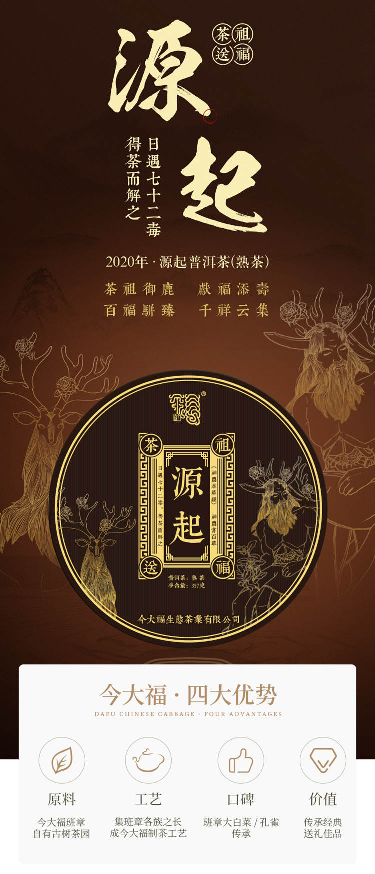 2020年今大福 源起 布朗山普洱茶熟茶 357克七子饼