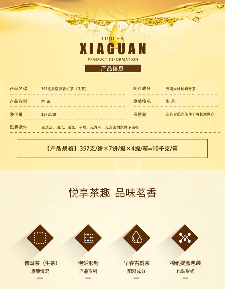 2019年下关 景迈寻香 357克古树七子饼 生茶