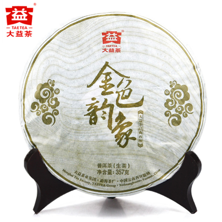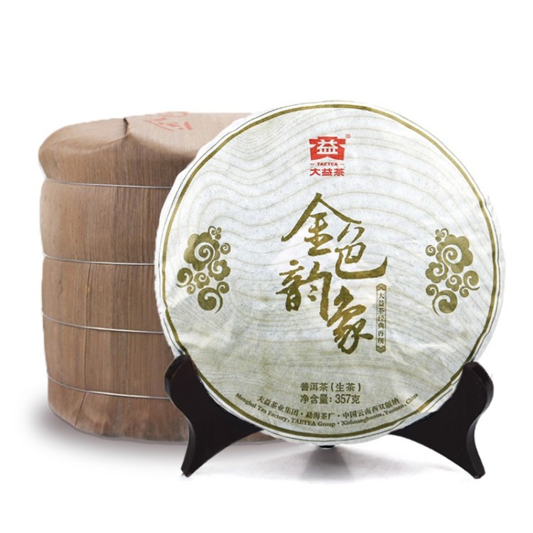 大益金色韵象青饼用料精良,以选用自然纯干仓陈化的老茶菁为精心拼配而成。茶饼端正,饼面撒面均匀,条索清晰,茶饼厚薄均匀,茶品色泽乌润显芽毫,叶底匀齐。汤色金黄犹如阳光灿烂,滋味浓厚,茶性十足,陈韵悠悠,浓醇馥郁,口感厚滑,回甘。