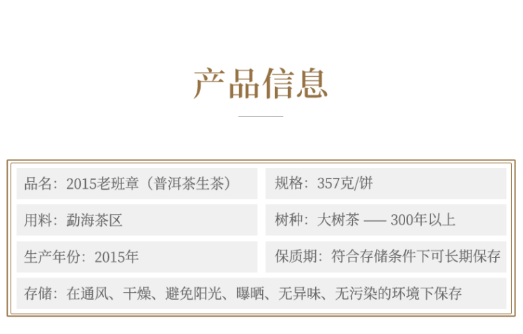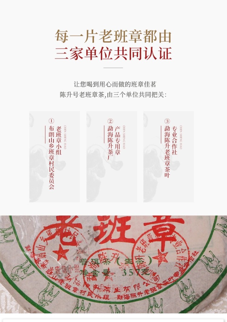 2015年陈升号 老班章饼茶 古树生茶357克七子饼