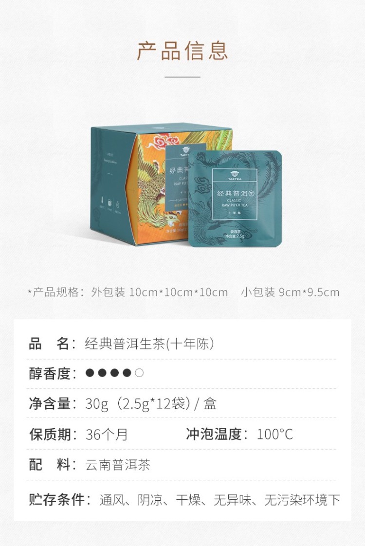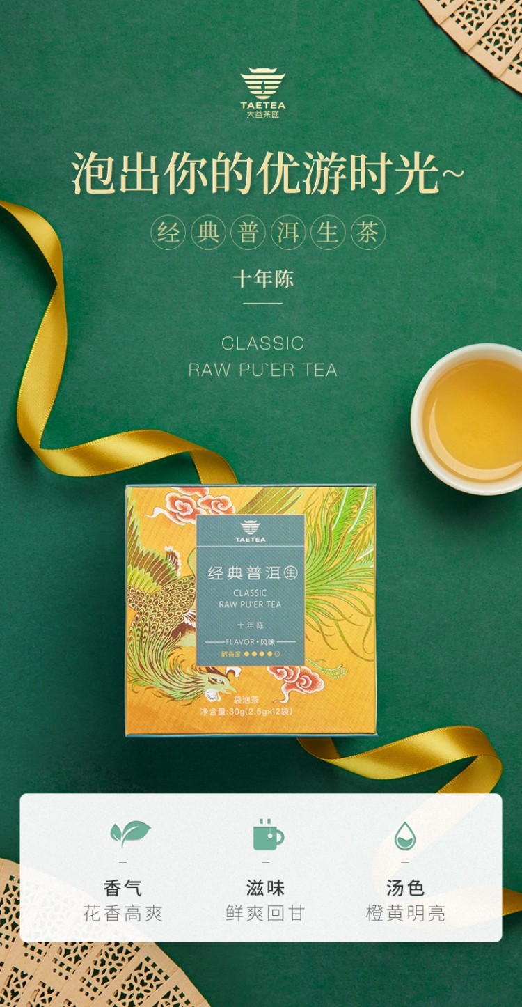 2020年大益 经典普洱生茶(十年陈) 三角袋泡茶 30克