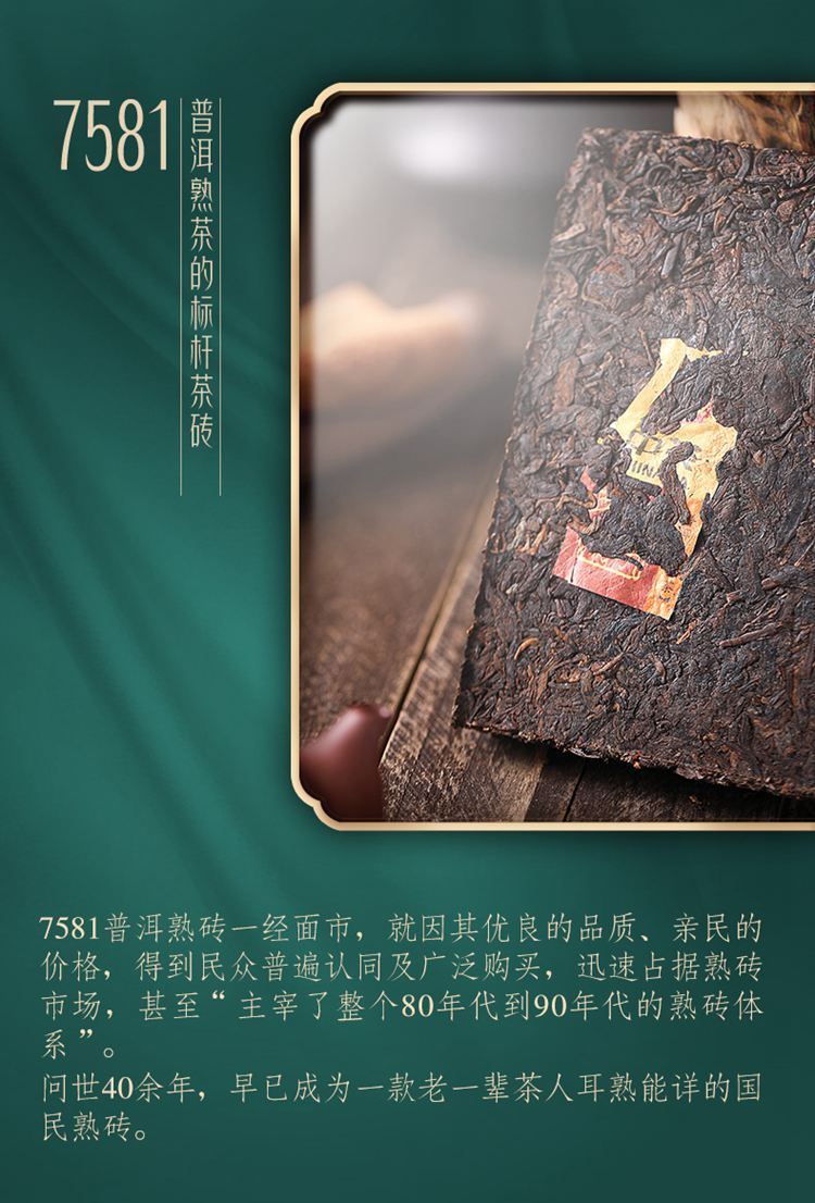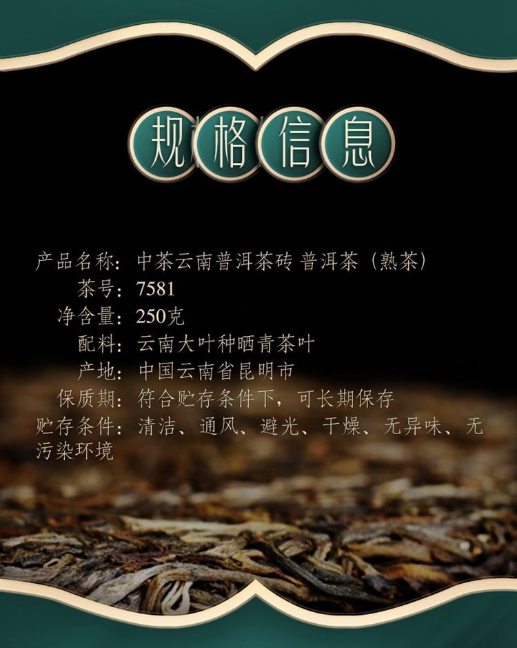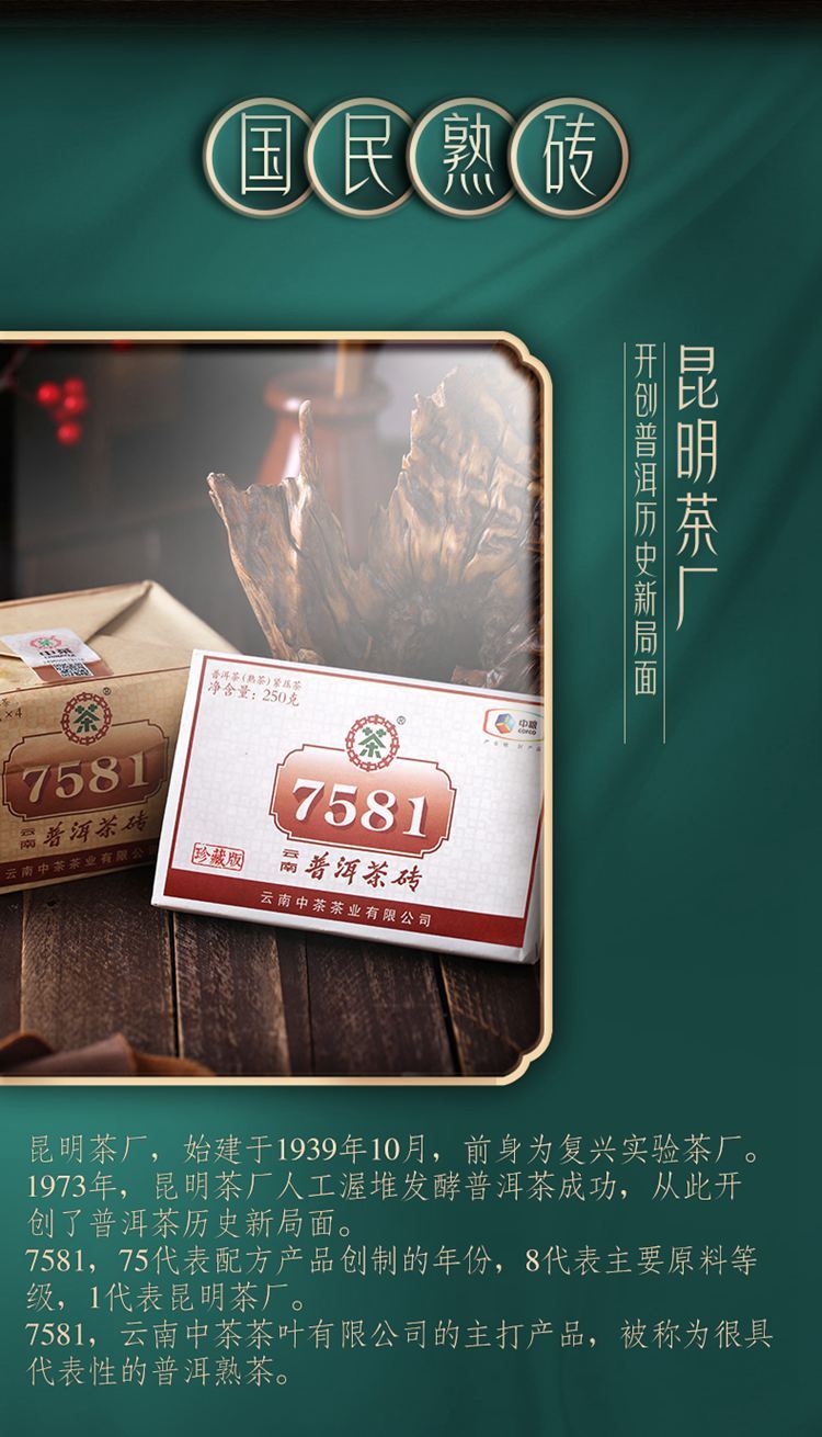 2020年中茶 经典7581 普洱标杆 茶砖 普洱熟砖茶 250克
