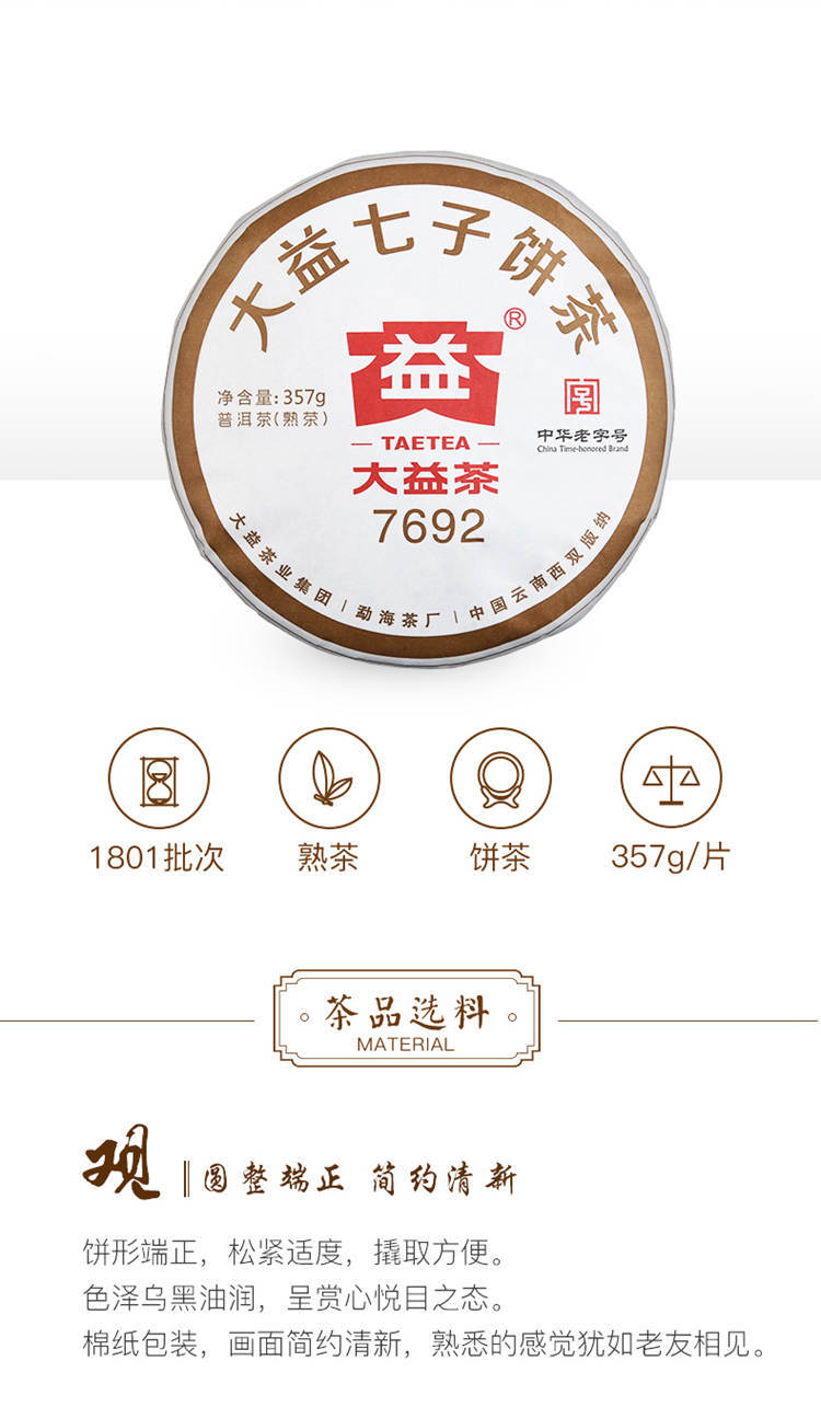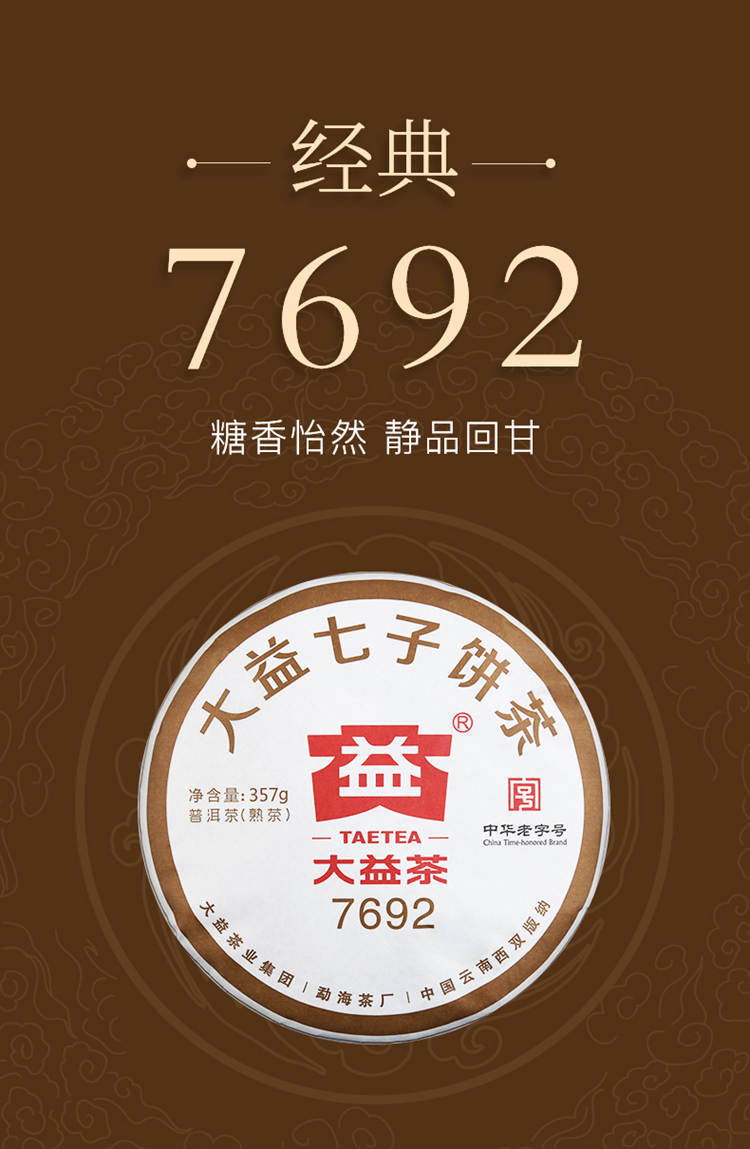 2020年大益 7692熟茶 357克七子饼2001批