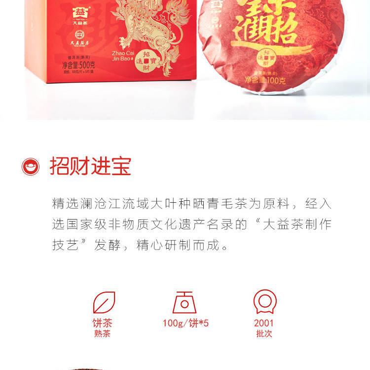 2020年大益 招财进宝 生熟套装100克饼茶