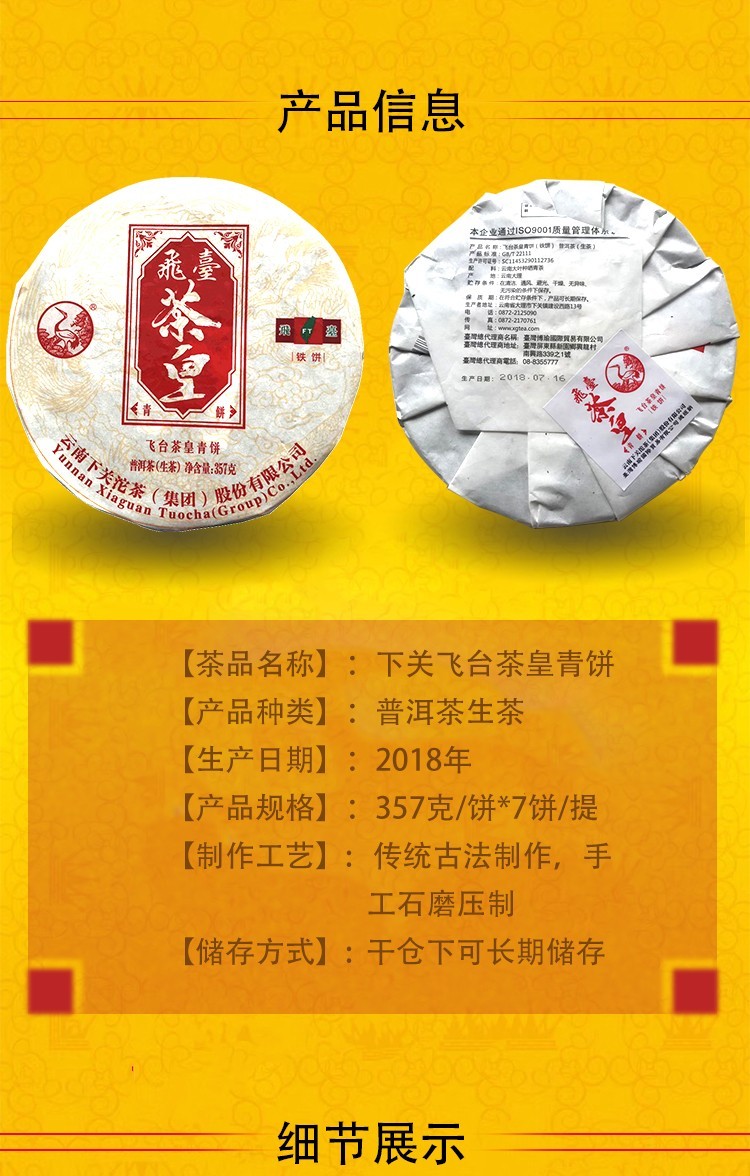 2018年下关飞台 茶皇青饼 铁饼 357克七子饼生茶