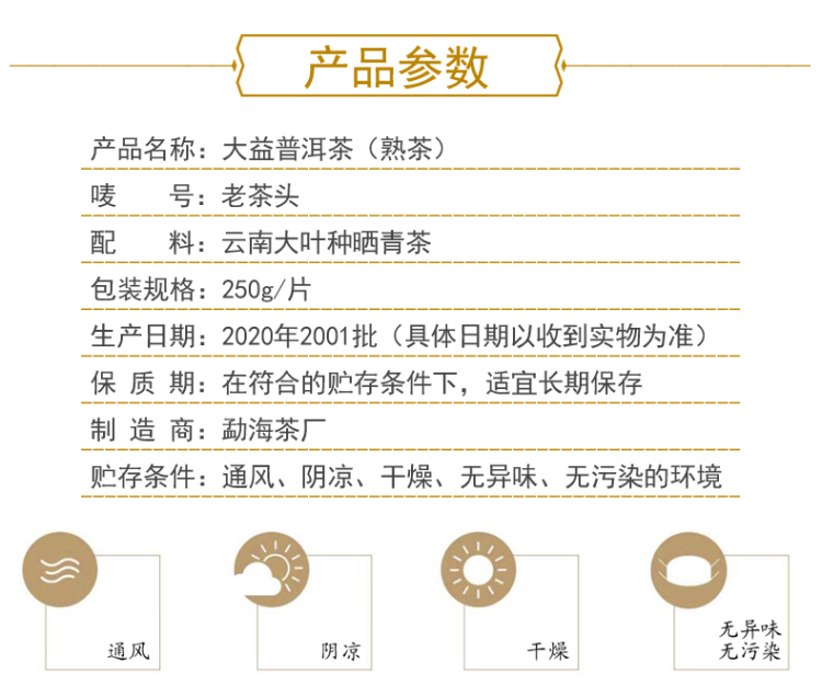2020年大益 老茶头 砖茶 2001批熟砖 250克 80周年特别版