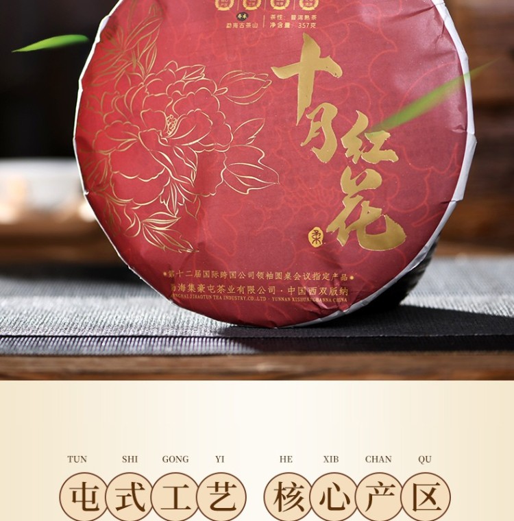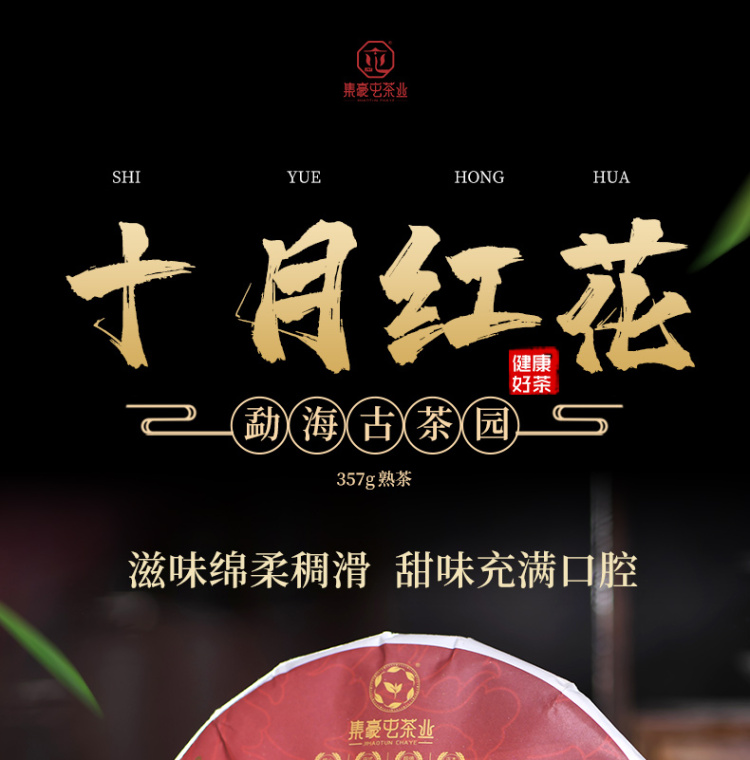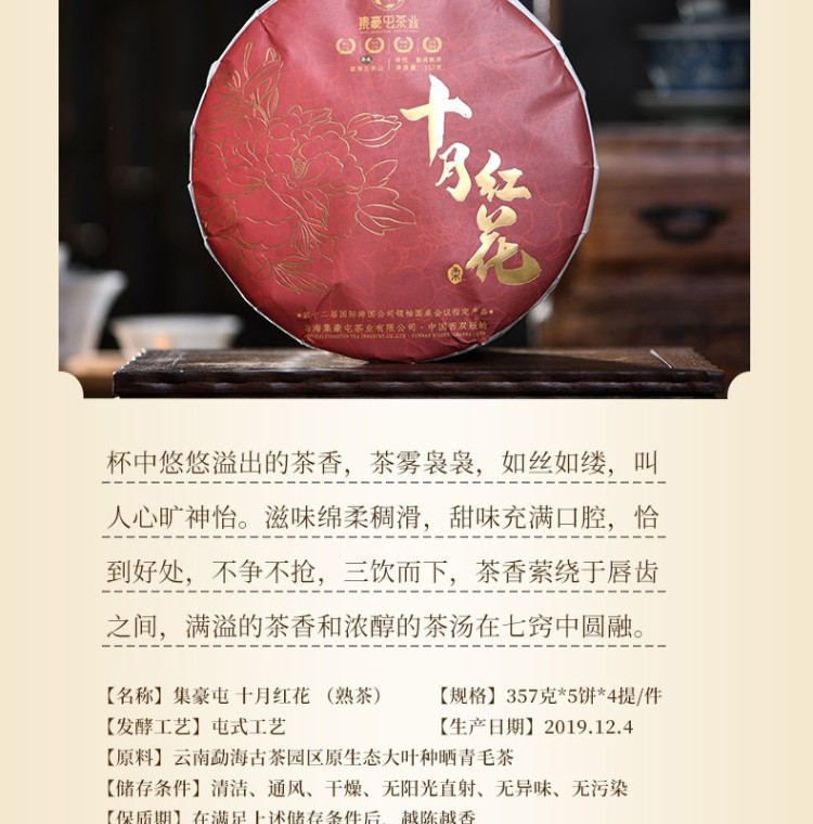 2019年集豪屯 十月红花 熟茶 古树发酵七子饼 357克