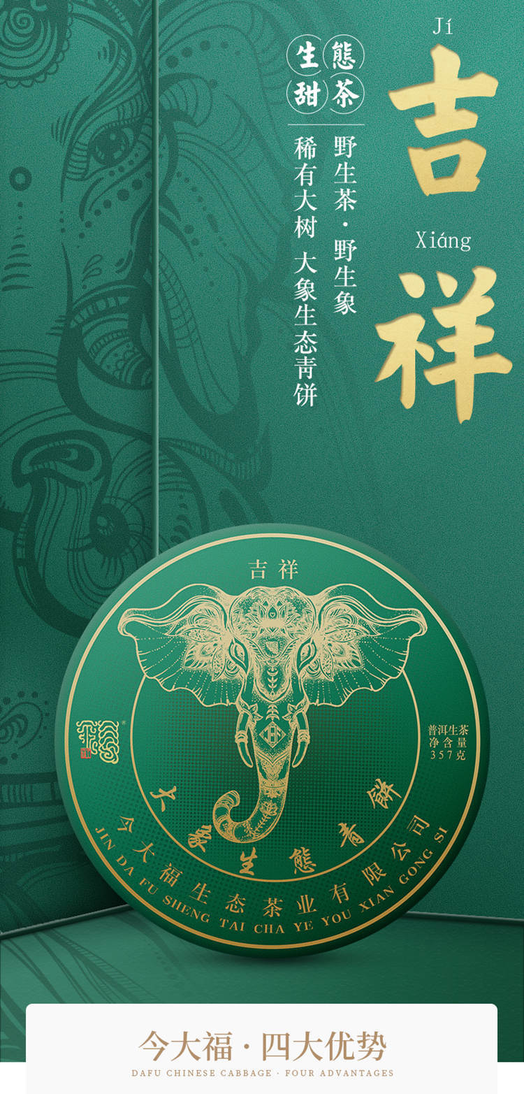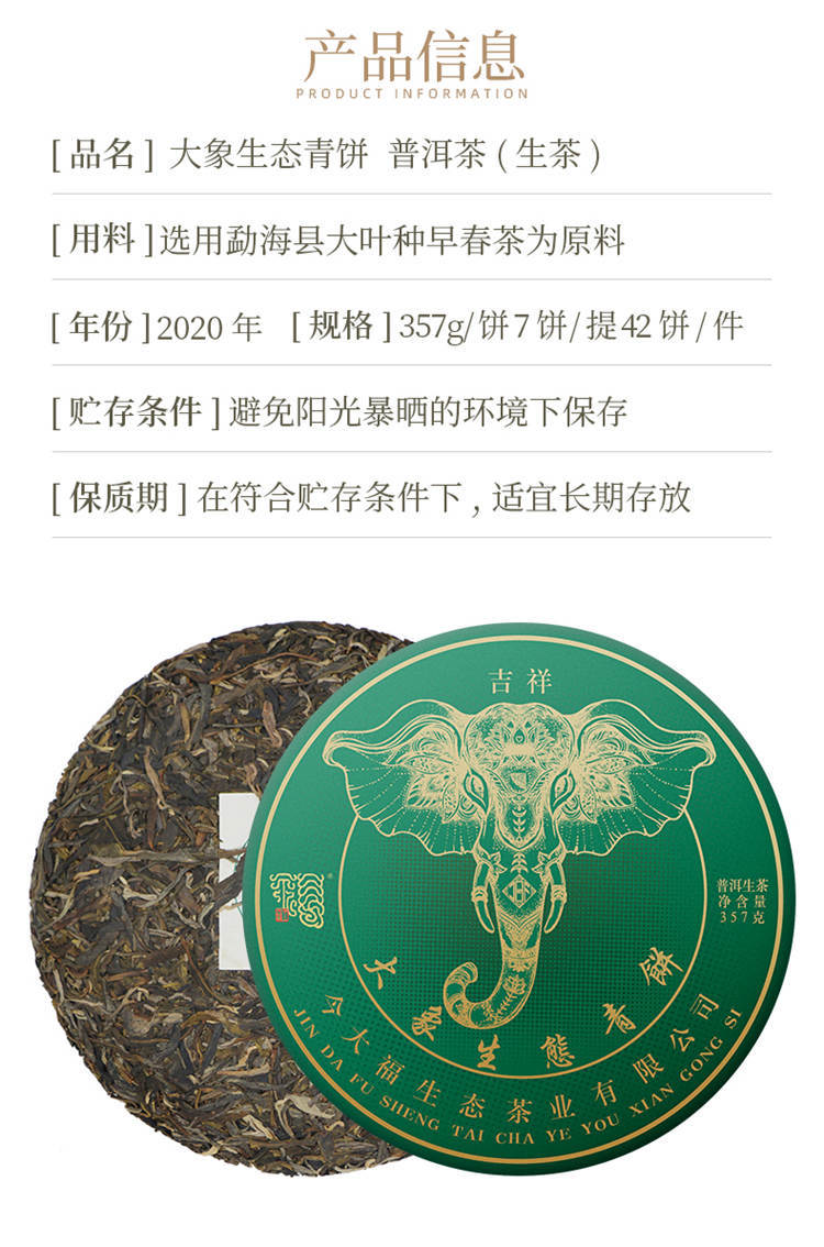 2020年今大福 大象生态青饼 普洱茶生茶357克七子饼