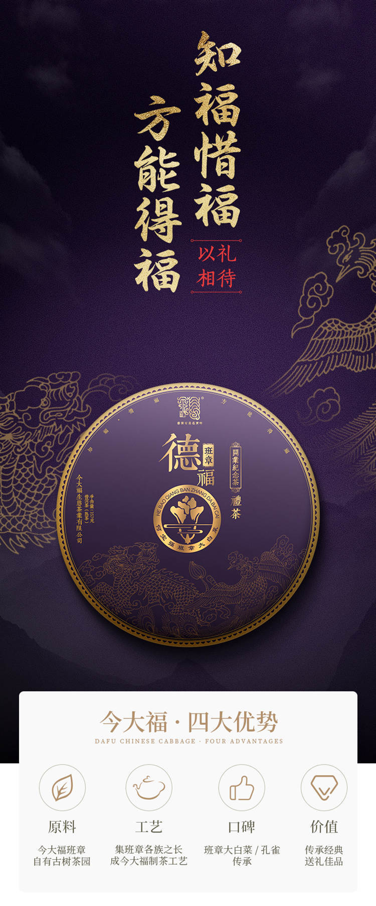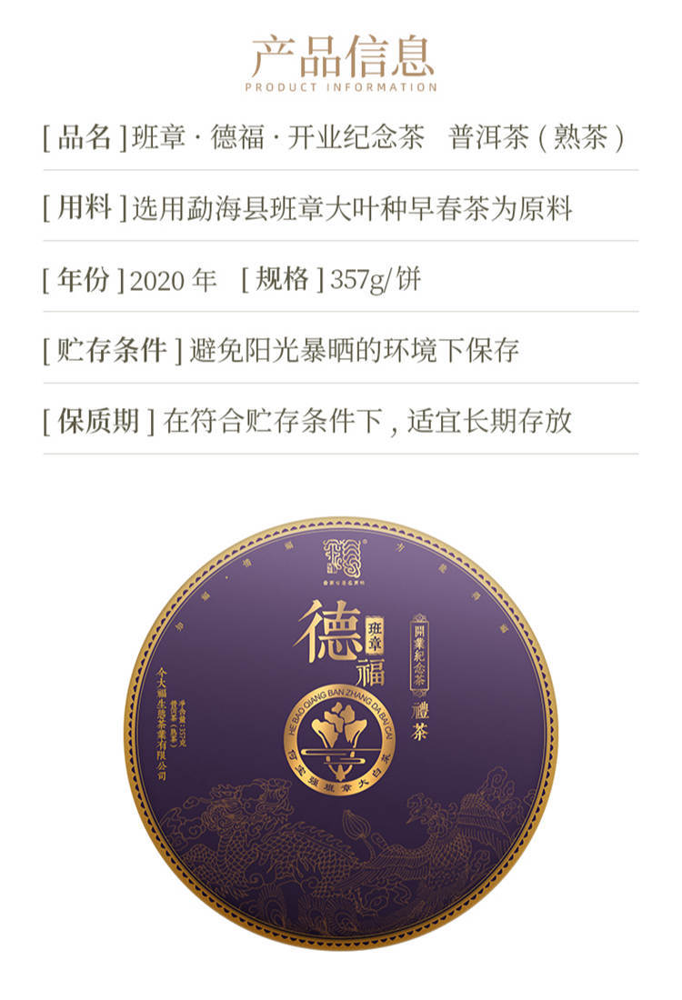 2020年今大福 德福 普洱熟茶饼茶 357克大白菜熟茶